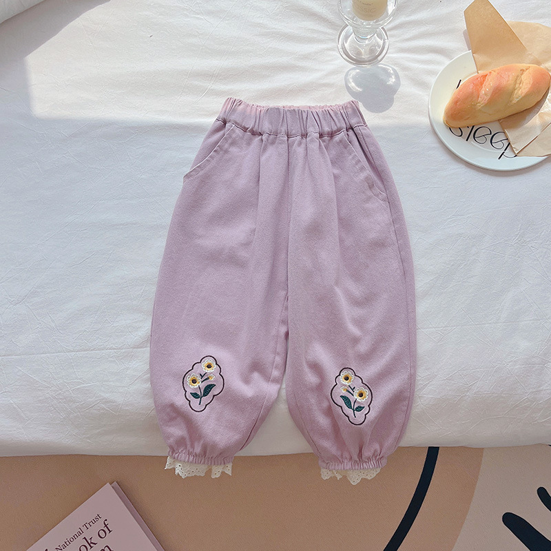 여아 가을 바지, 여자아이들을 위한 새로운 스타일의 세련된 아기 자수 해바라기 바지, 패셔너블한 캐주얼 바지, 봄 가을 유행 의류스토어 가기