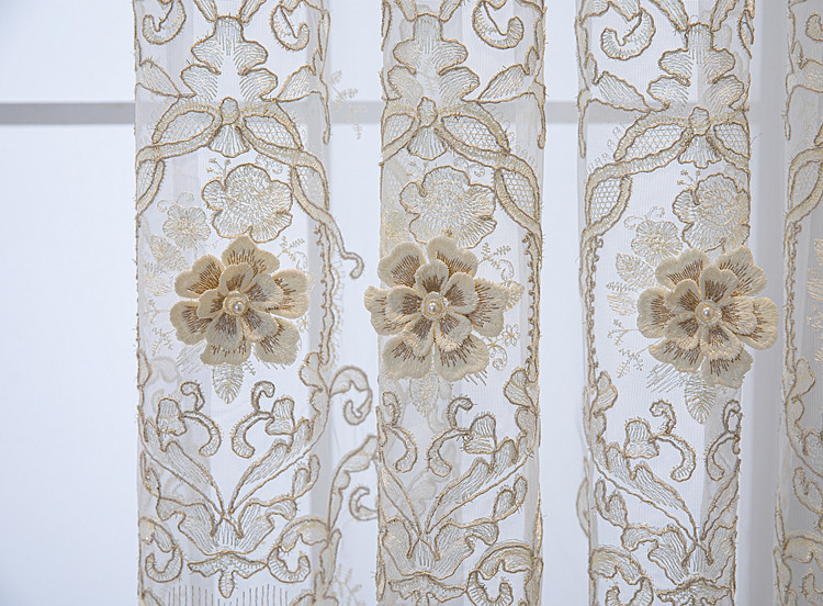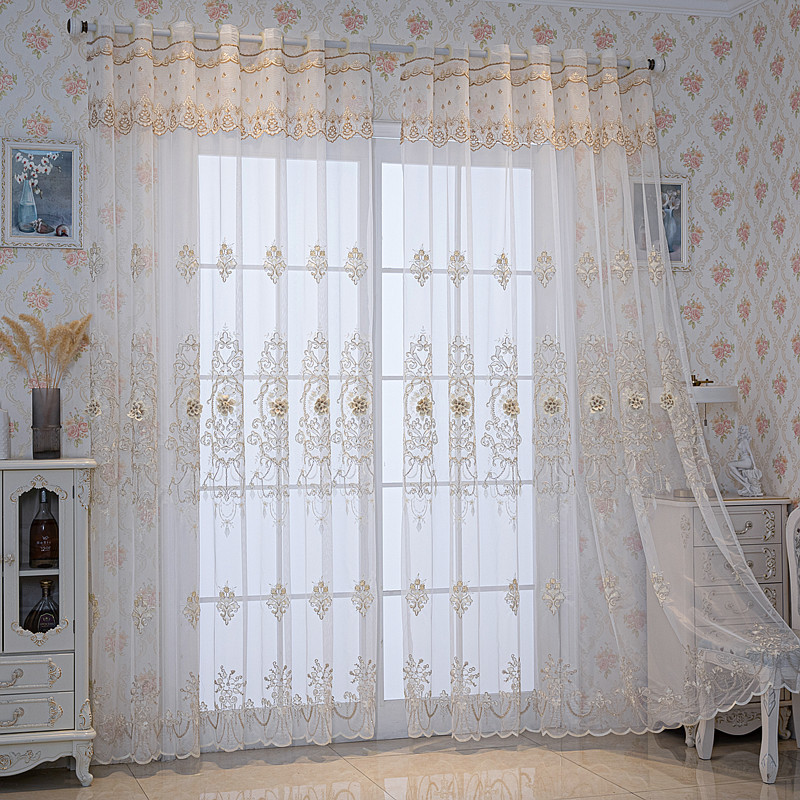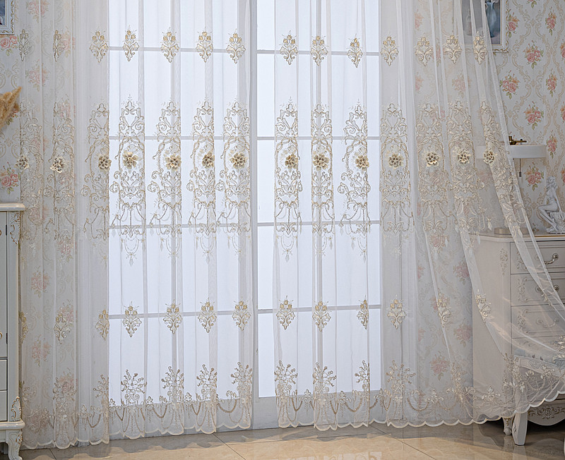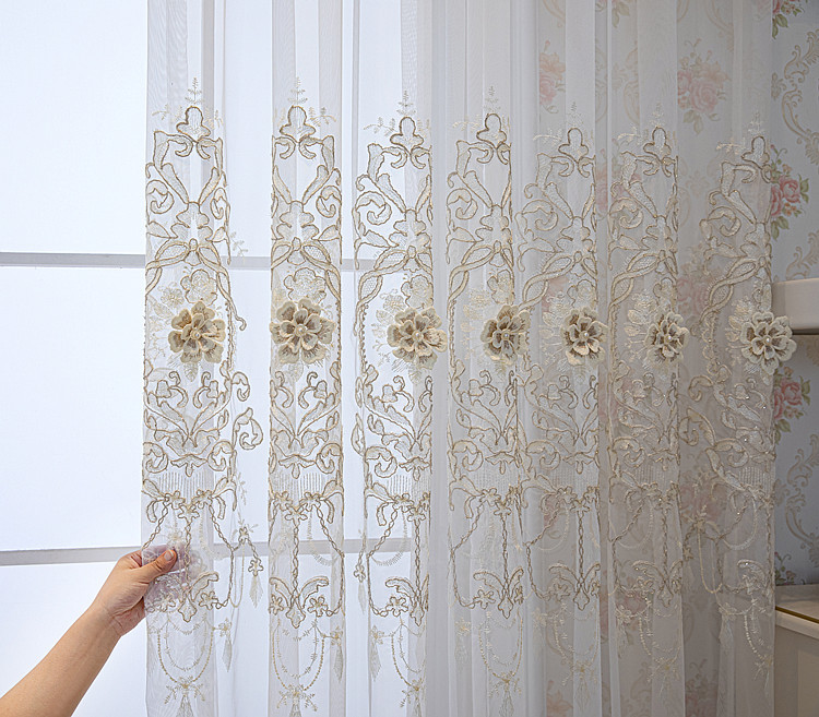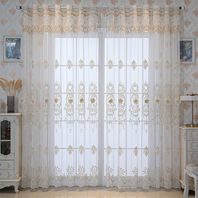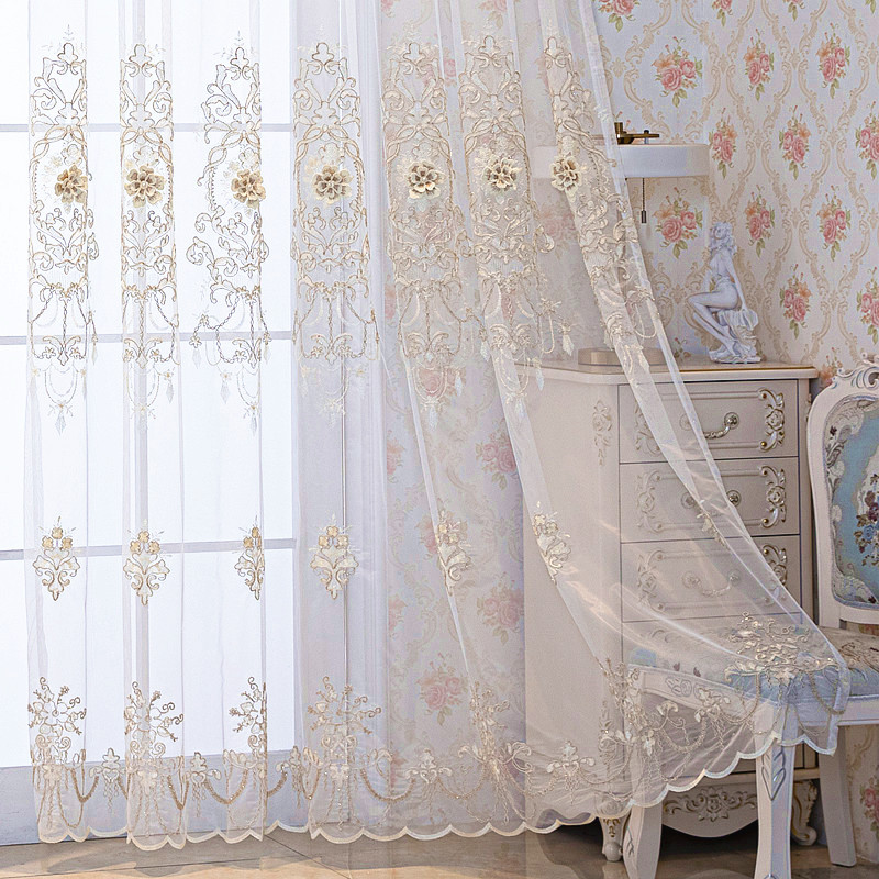 저장성 사오싱 대외 무역 유럽 스타일 거즈 커튼 양각 자수 침실 발코니 거즈 커튼 투광성 제조업체 도매