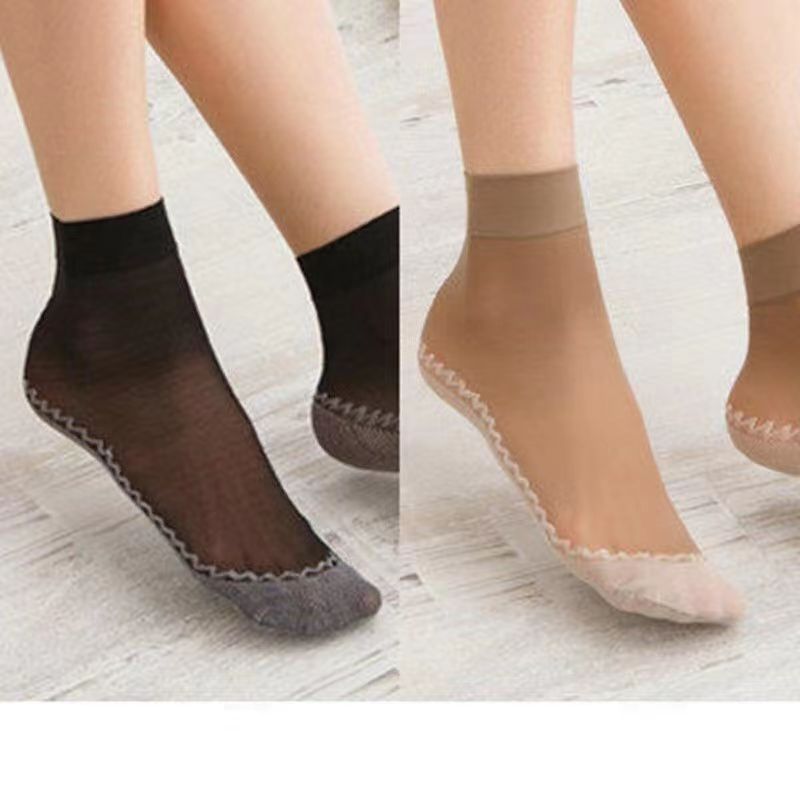 Zhuji 양말-실크 스타킹 여성의 짧은 양말 봄 여름 가을 면화 바닥 땀 흡수성 미끄럼 방지 양말 살색 안티 후크 실크 튜브 얇은