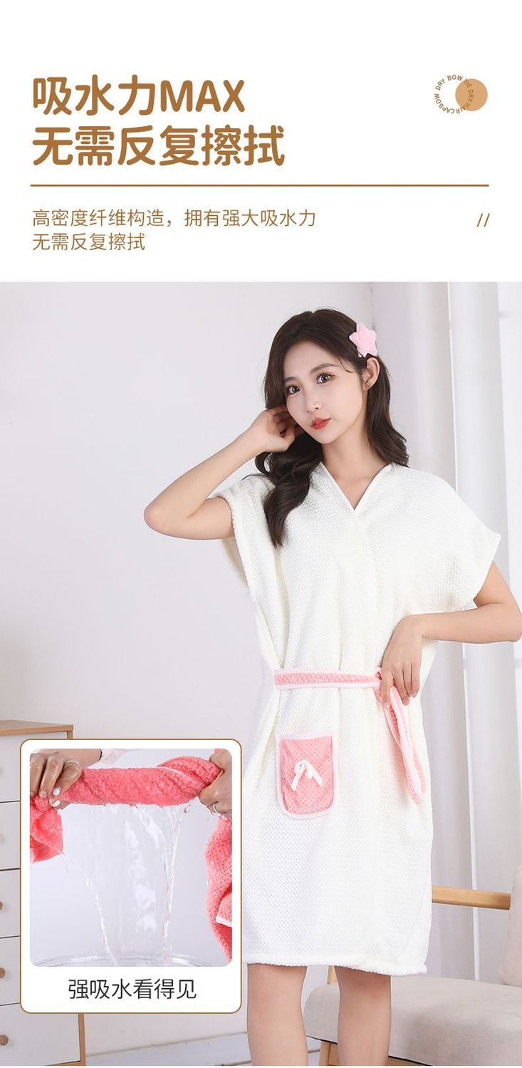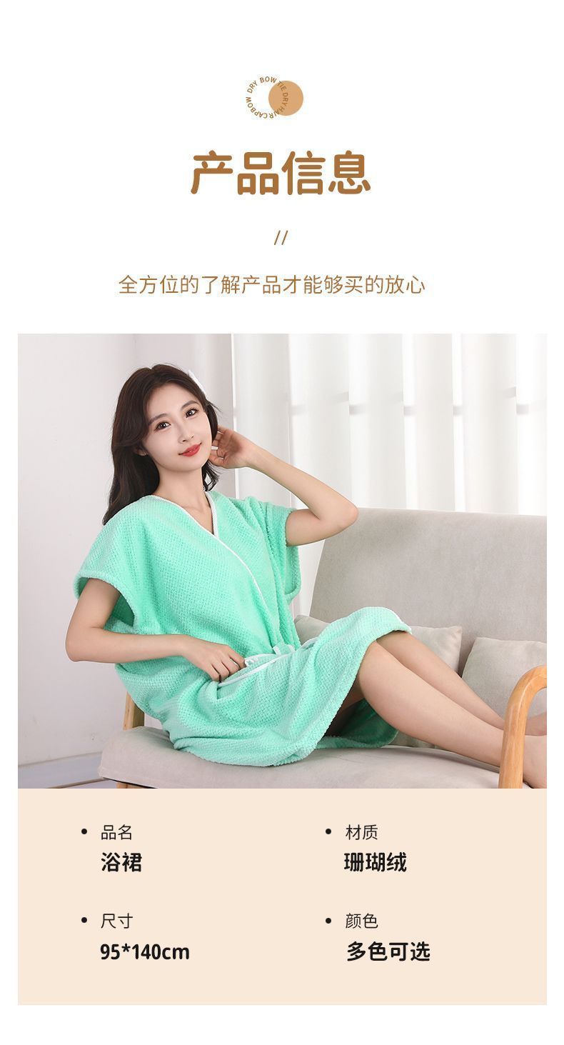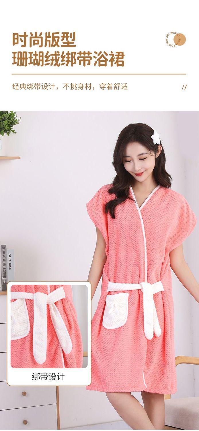 목욕 타월 여성 산호 양털 목욕 가운 가을 및 겨울 목욕 반팔 부드러운 수면 흡수 로브 레이스 업 홈 목욕 원피스 착용스토어 가기