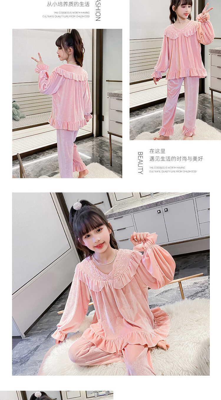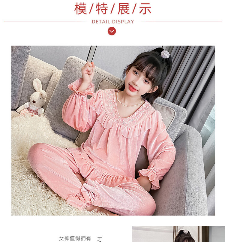 소녀 황금 벨벳 잠옷 봄과 가을 새로운 어린이 캐주얼 투피스 세트 가을과 겨울 얇은 벨벳 홈 의류 세트스토어 가기