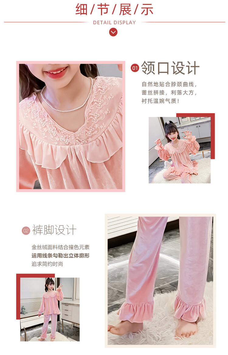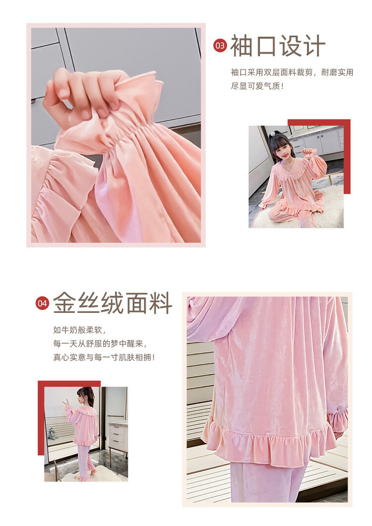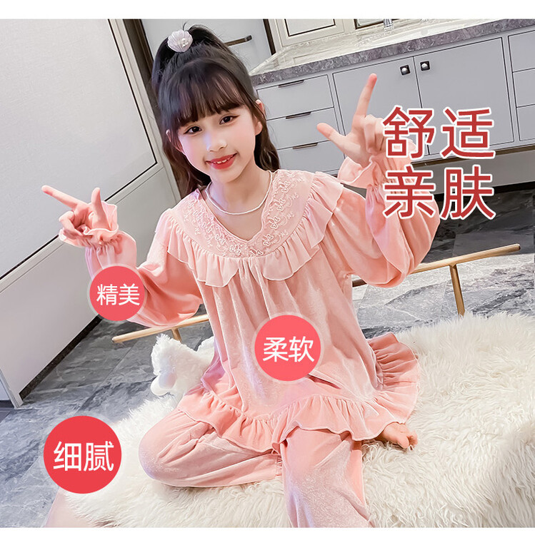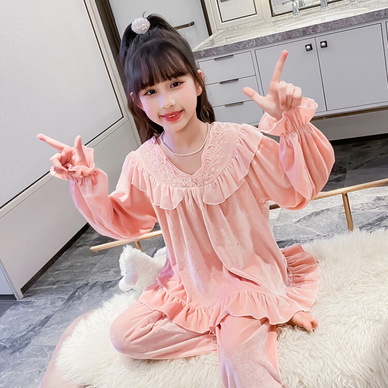 소녀 황금 벨벳 잠옷 봄과 가을 새로운 어린이 캐주얼 투피스 세트 가을과 겨울 얇은 벨벳 홈 의류 세트