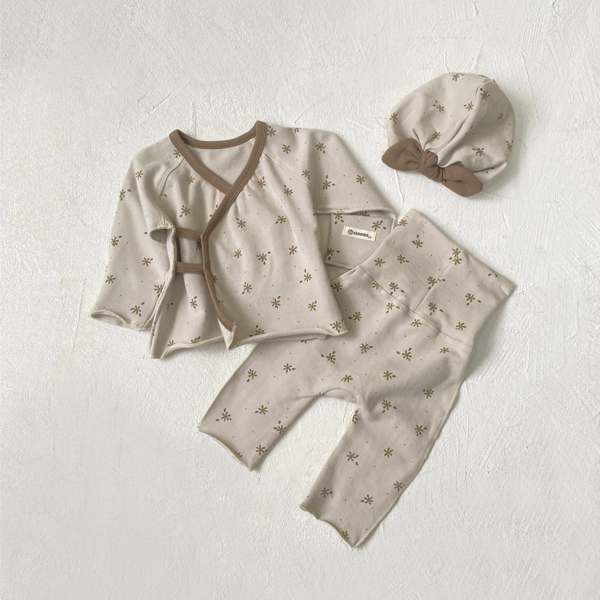 • 그레이 살구 쓰리피스 슈트 (탑+바지+모자)