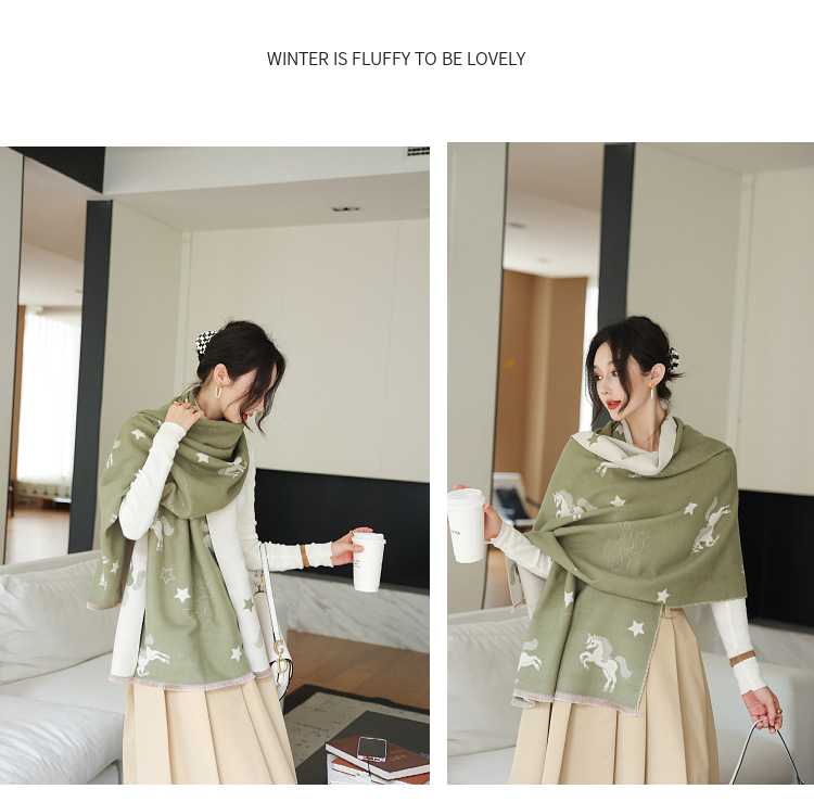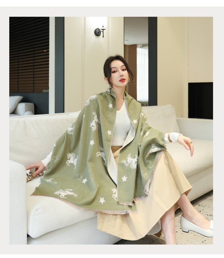 여성 스카프 봄과 가을 2024 새로운 하이 엔드 감각 마차 모조 캐시미어 대형 스카프 목도리 외부 이중 목적 따뜻한스토어 가기