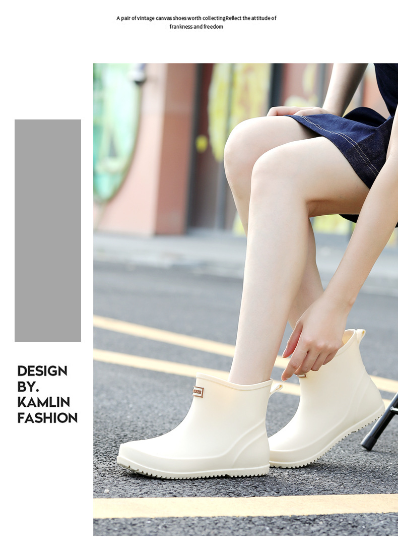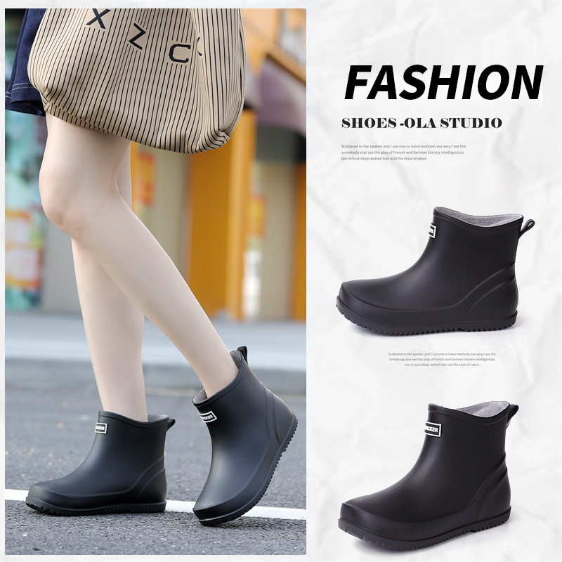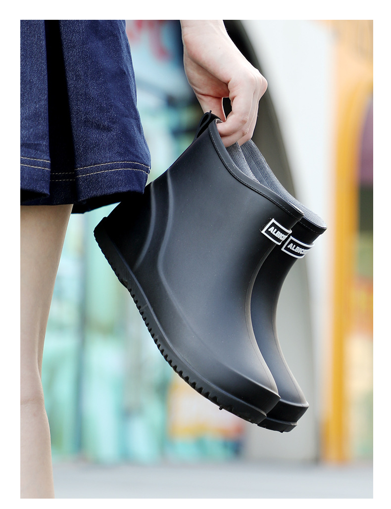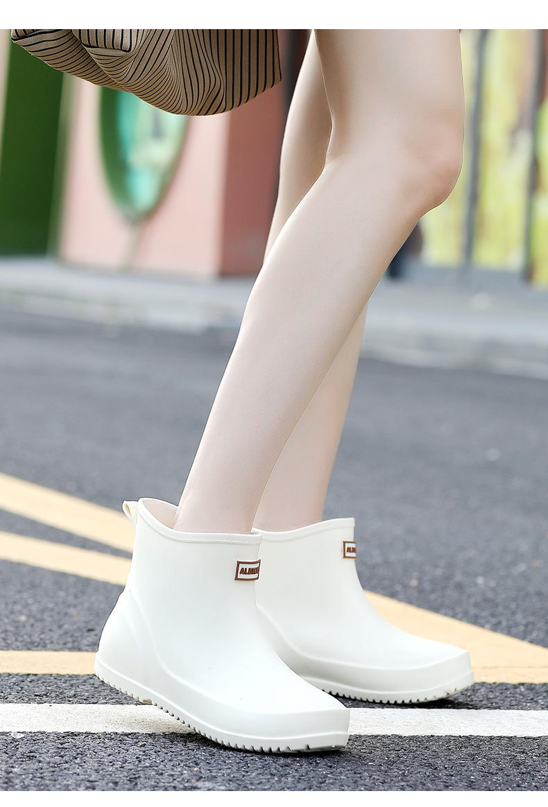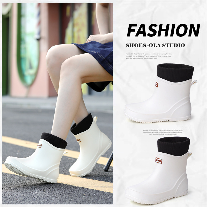 트렌디 한 여성 짧은 비 신발 간단한 블랙 패션 장화 여성 한국식 화이트 웨이딩 신발 미끄럼 방지 고무 신발 짧은 부츠