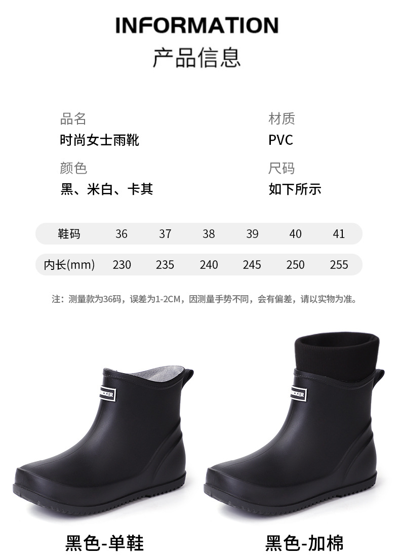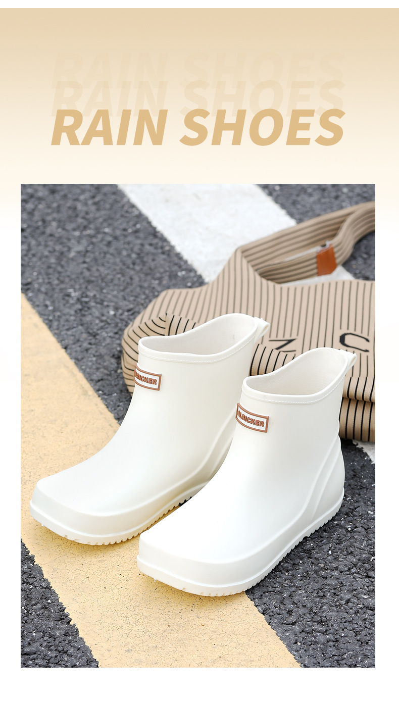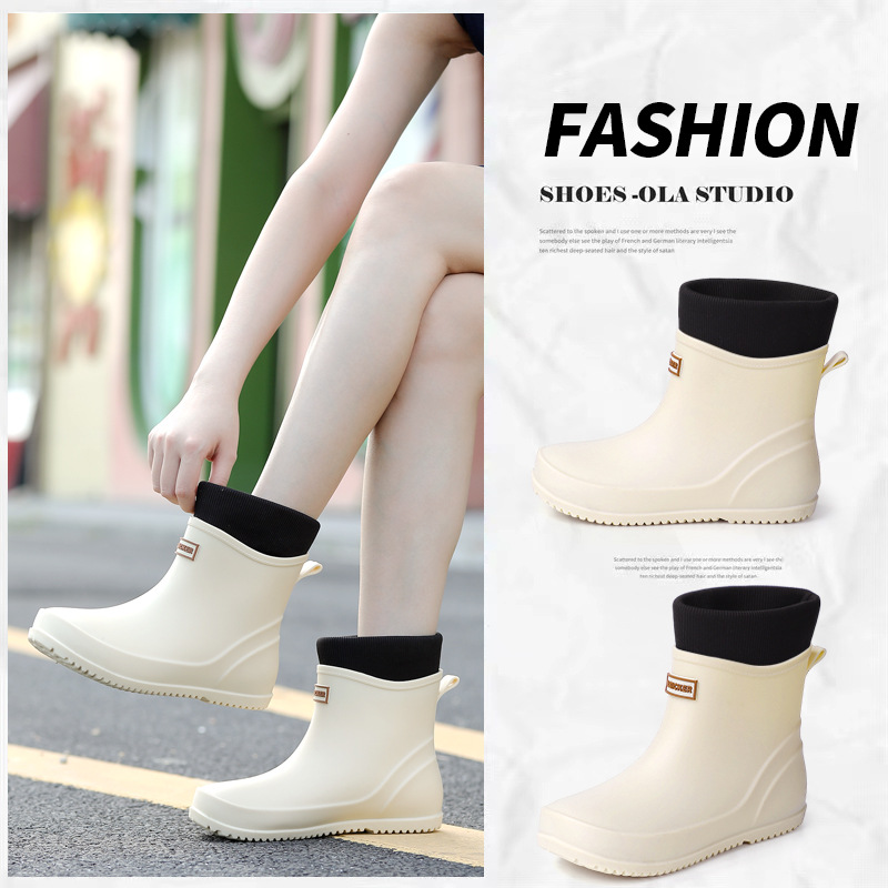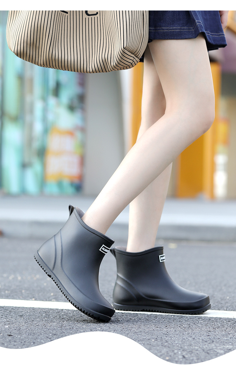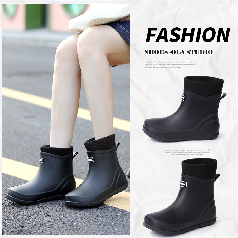 트렌디 한 여성 짧은 비 신발 간단한 블랙 패션 장화 여성 한국식 화이트 웨이딩 신발 미끄럼 방지 고무 신발 짧은 부츠