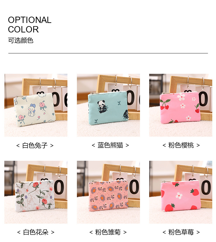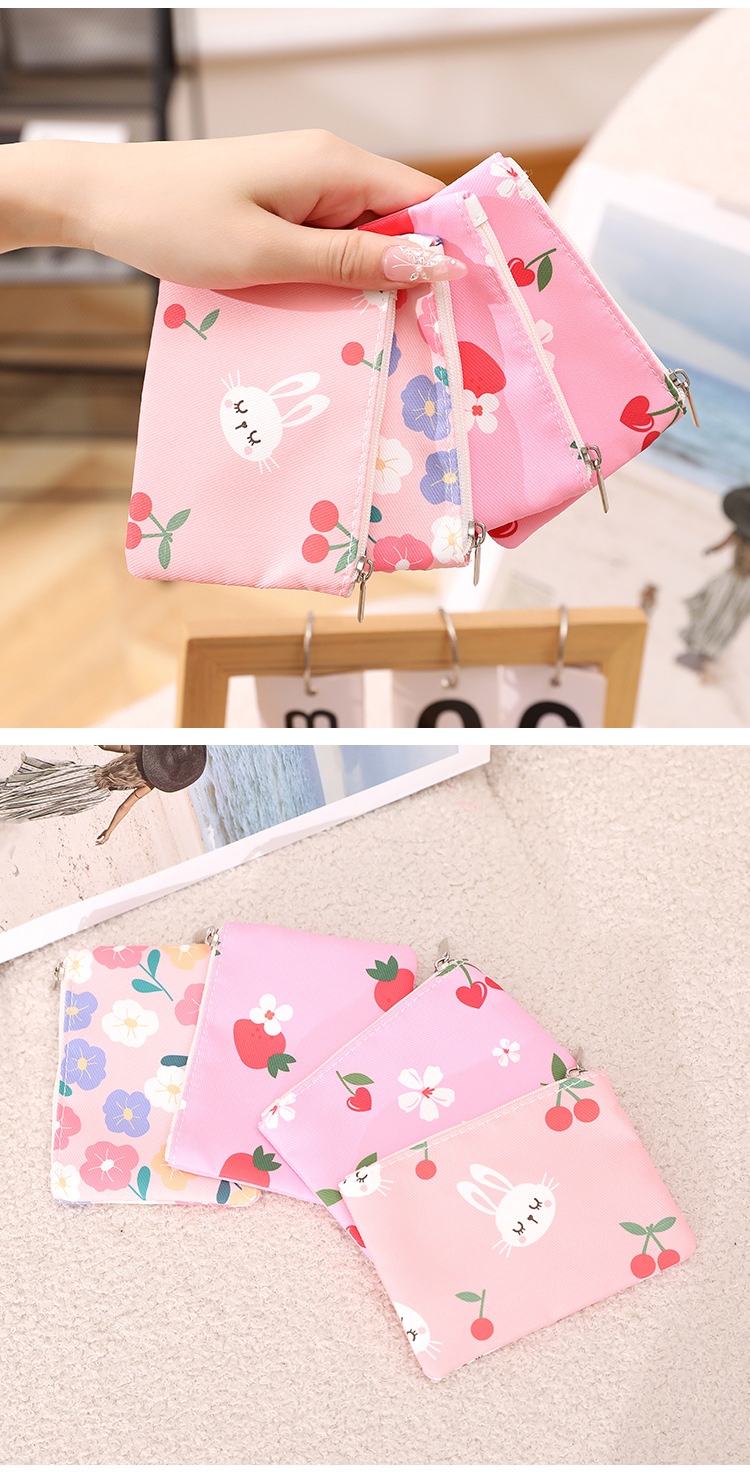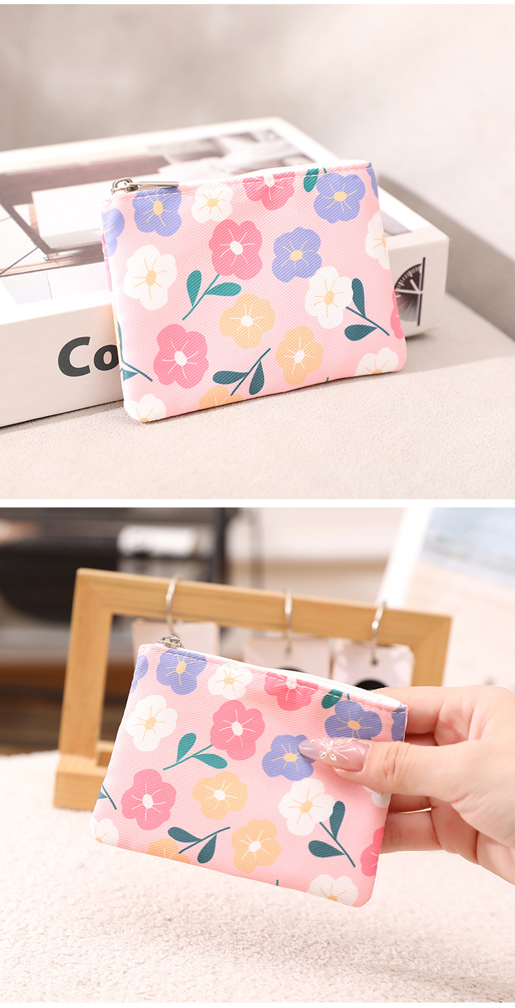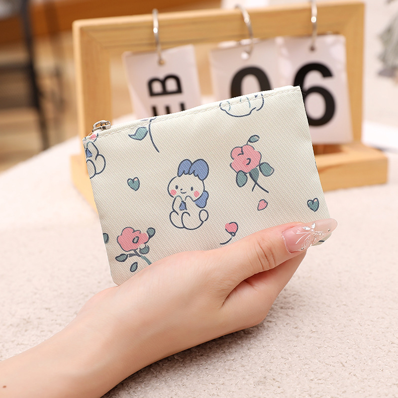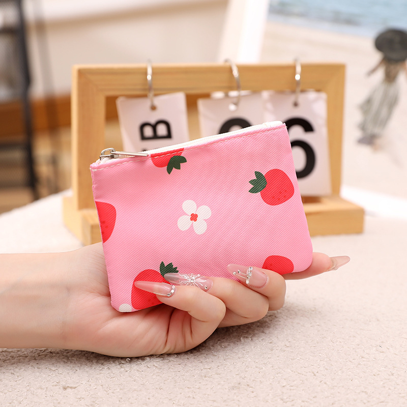 인쇄 된 지퍼 동전 지갑 작은 신선한 직물 저장 작은 가방 여성 학생 귀여운 미니 휴대용 작은 포켓 지갑