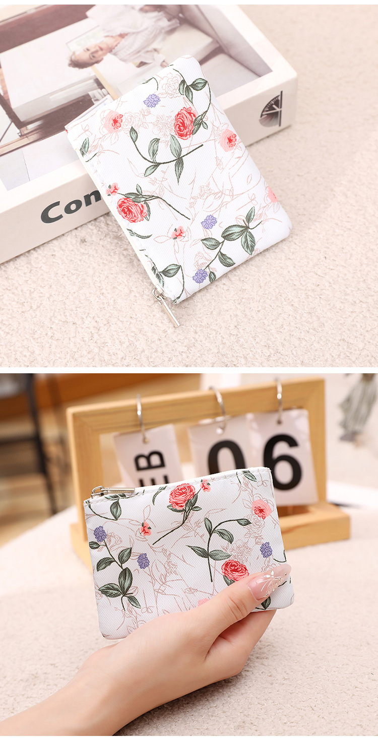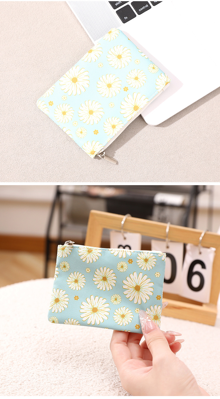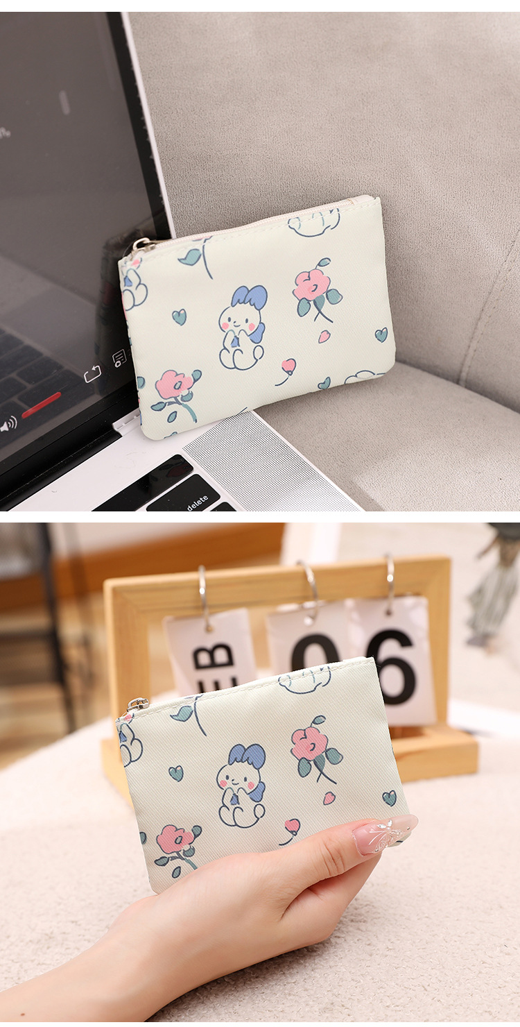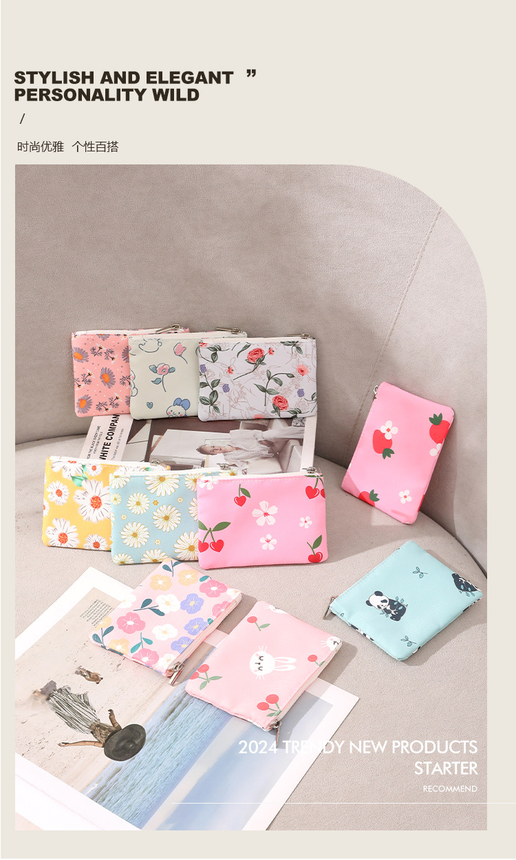 인쇄 된 지퍼 동전 지갑 작은 신선한 직물 저장 작은 가방 여성 학생 귀여운 미니 휴대용 작은 포켓 지갑