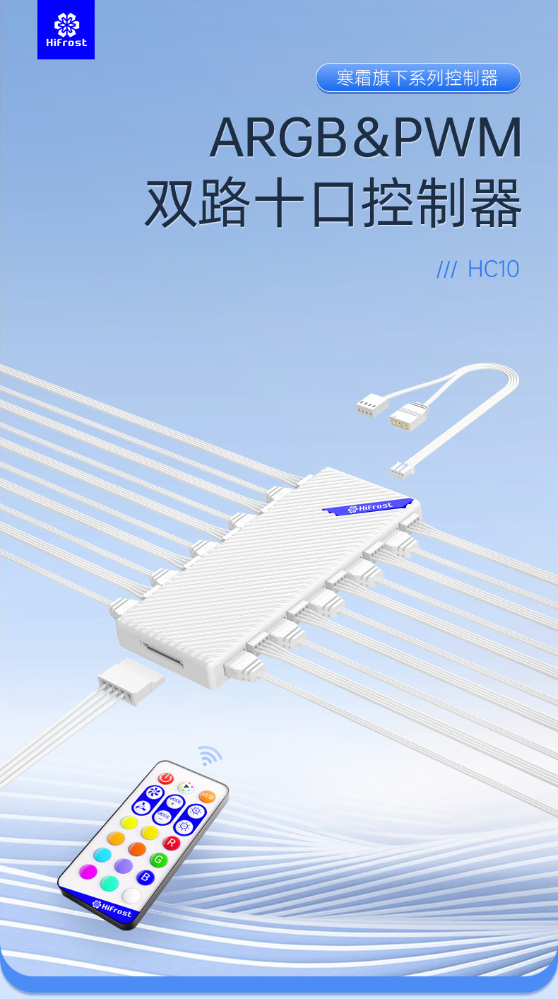 섀시 팬 ARGB 온도 제어 허브 컴퓨터 5v3 핀/4pin 듀얼 10 포트 무선 원격 제어 팬 컨트롤러스토어 가기