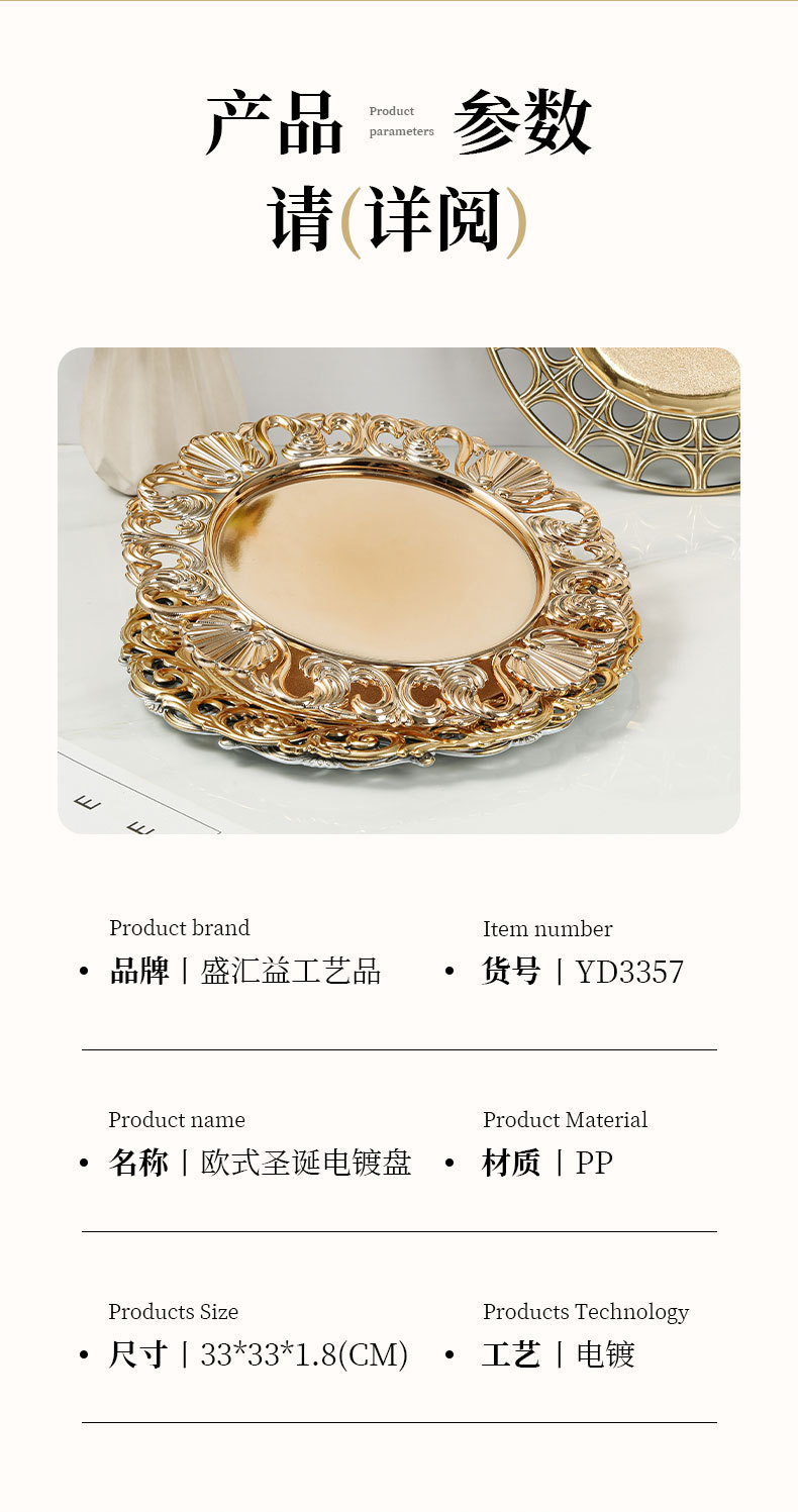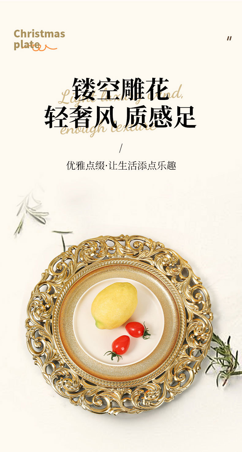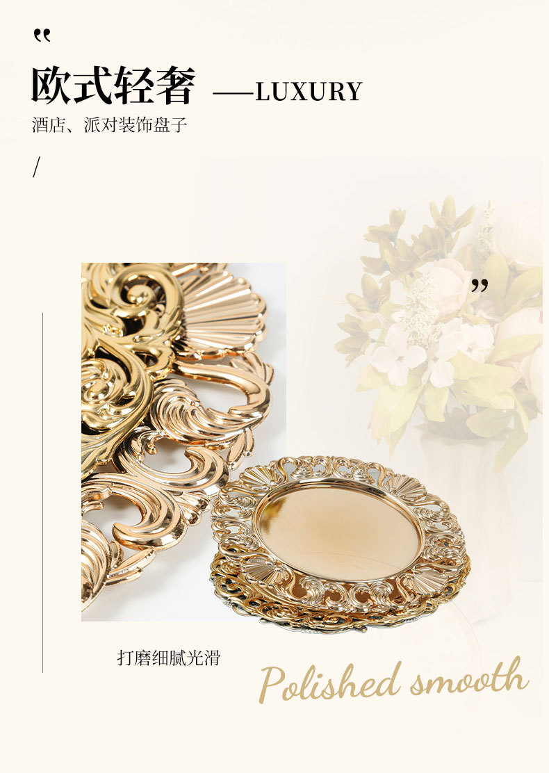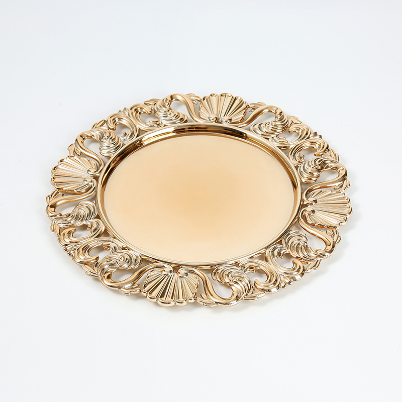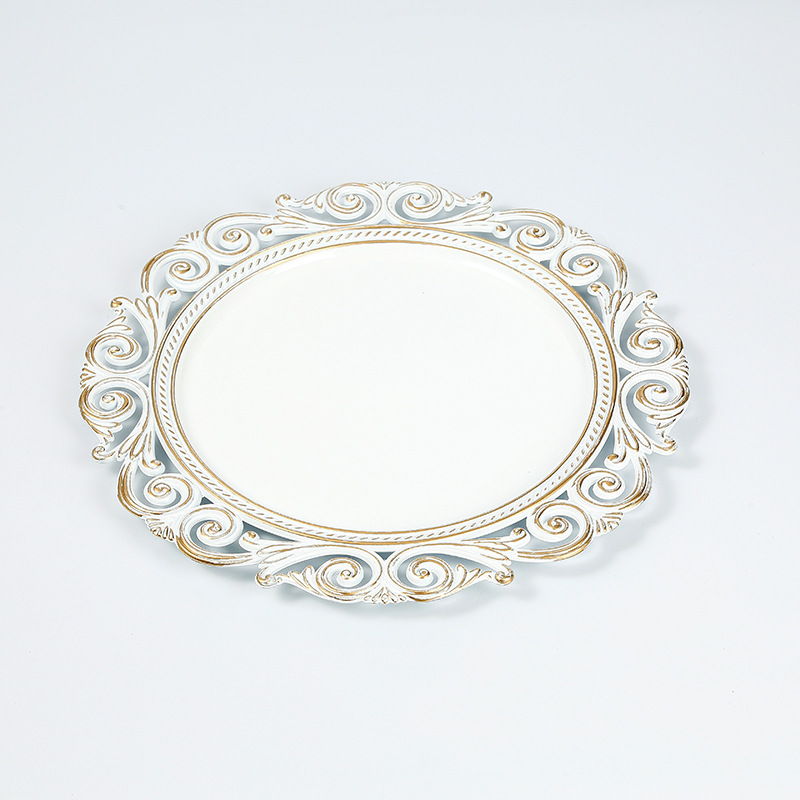 대외 무역 유럽 스타일 레트로 과일 플레이트 웨딩 호텔 일회용 공예 플레이트 장식 플라스틱 플레이트 충전기 플레이트