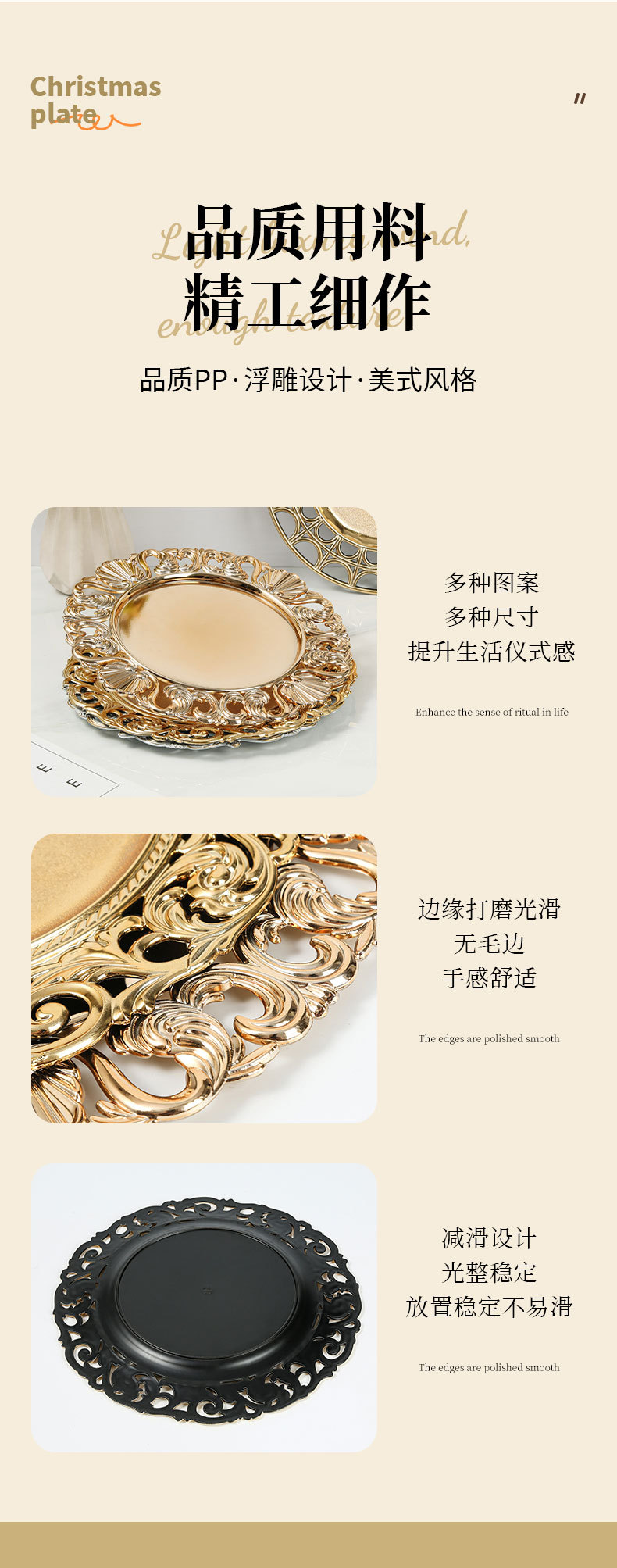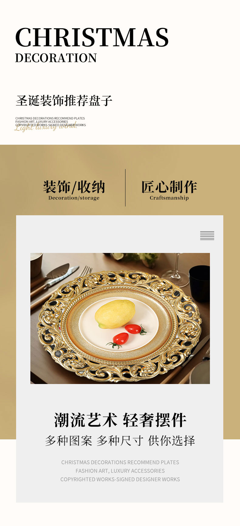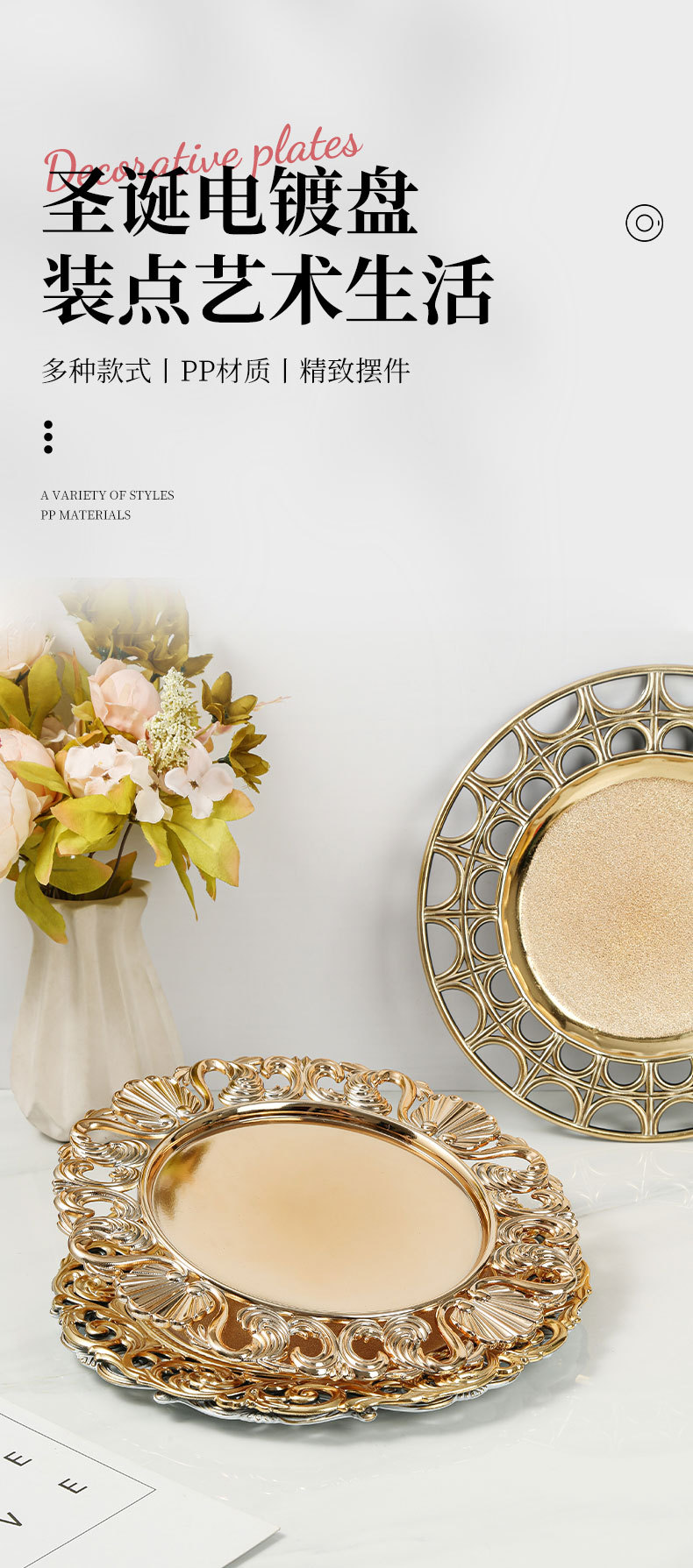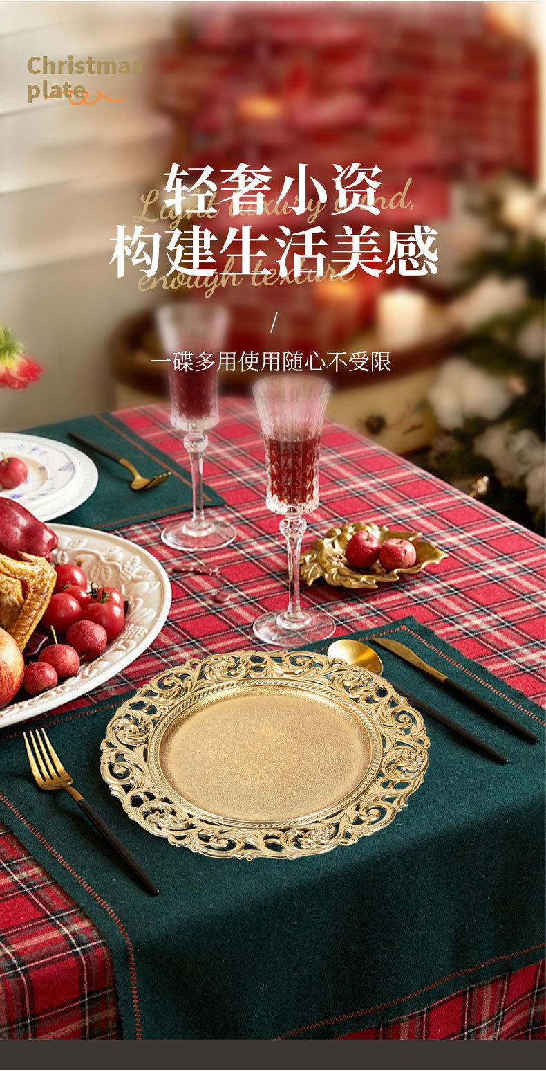 대외 무역 유럽 스타일 레트로 과일 플레이트 웨딩 호텔 일회용 공예 플레이트 장식 플라스틱 플레이트 충전기 플레이트