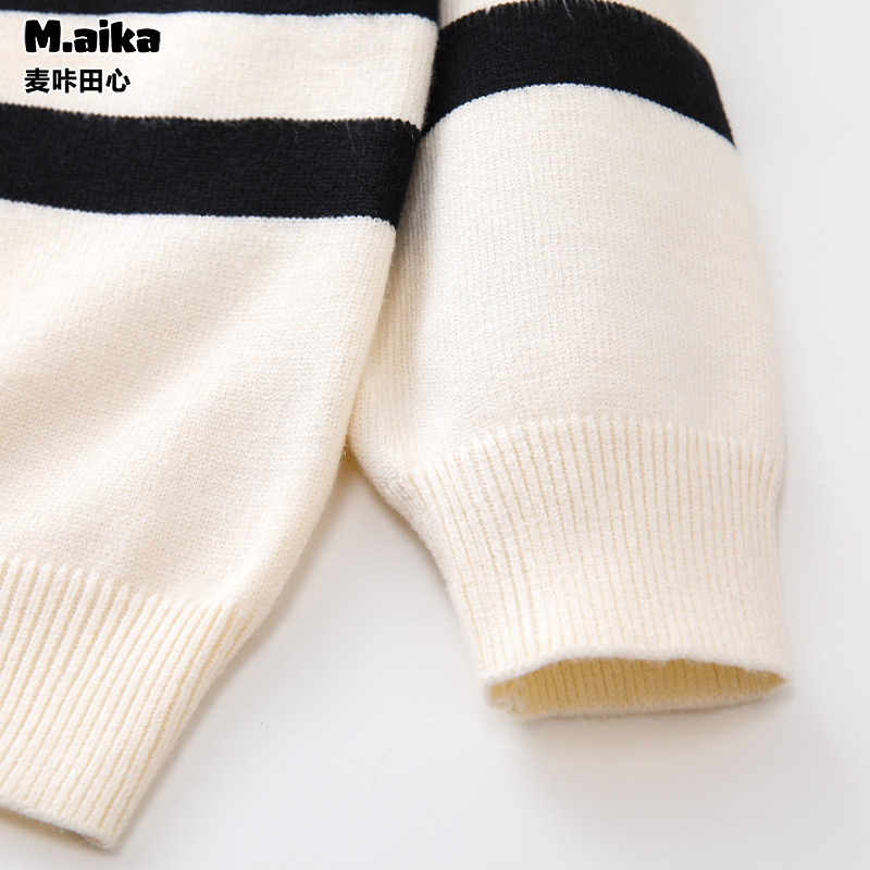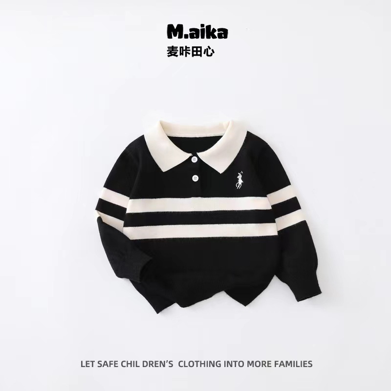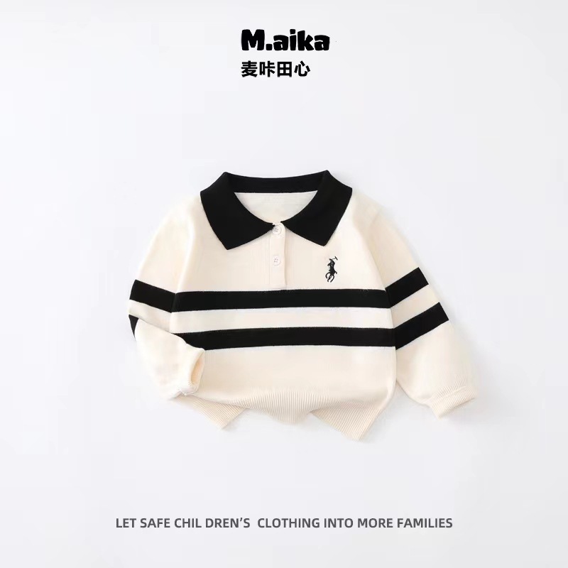 어린이 옷깃 스트라이프 한국 스타일 니트 스웨터 2024 가을, 겨울 소년 캐주얼 다목적 스웨터 자수 POL0 셔츠스토어 가기