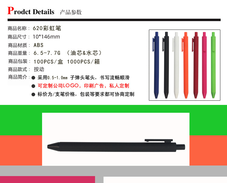 국경 간 마카롱 컬러 스프레이 접착제 볼펜 사용자 지정 로고 프레스 오일 펜 사무실 볼펜 1.0 블랙 펜
