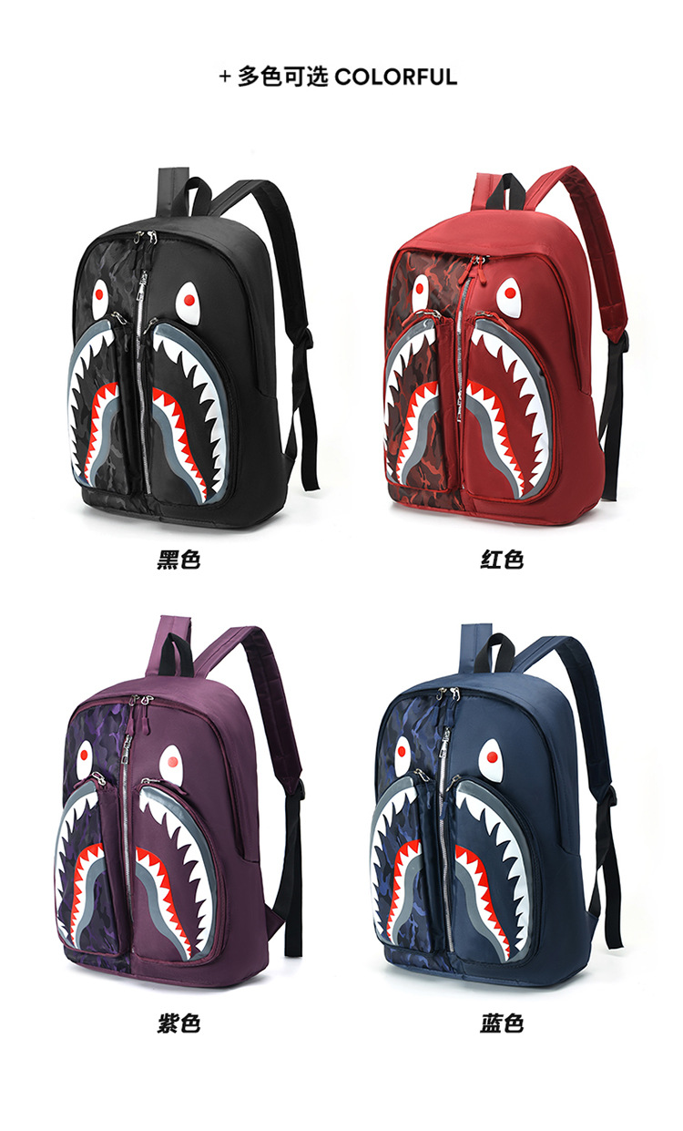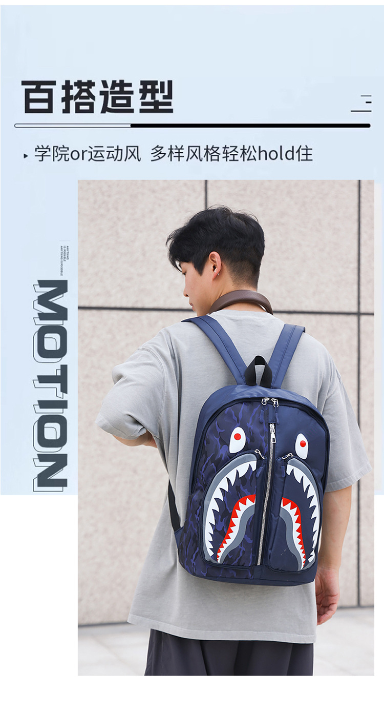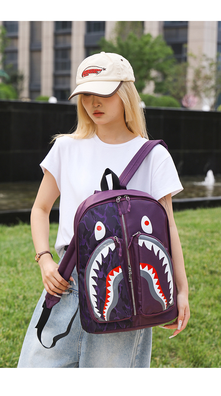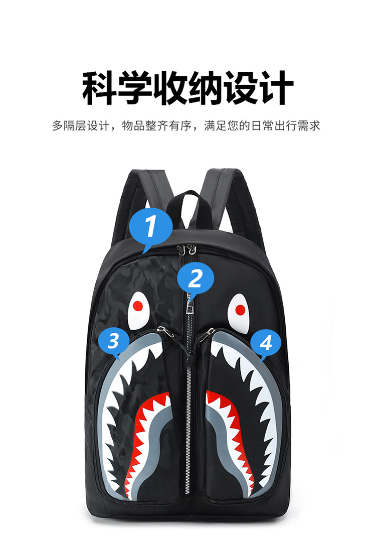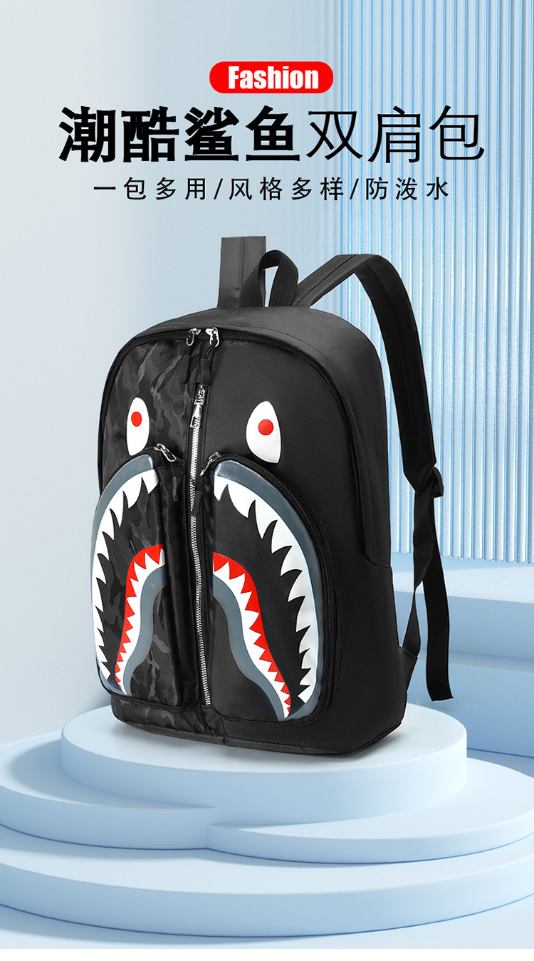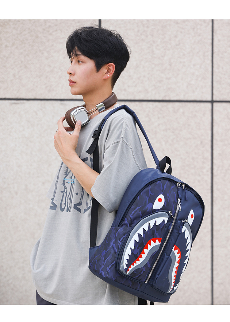 2023 새로운 상어 Schoolbag 베이프 개인화 된 낙서 학생 배낭 남성과 여성의 패션 유행 배낭스토어 가기