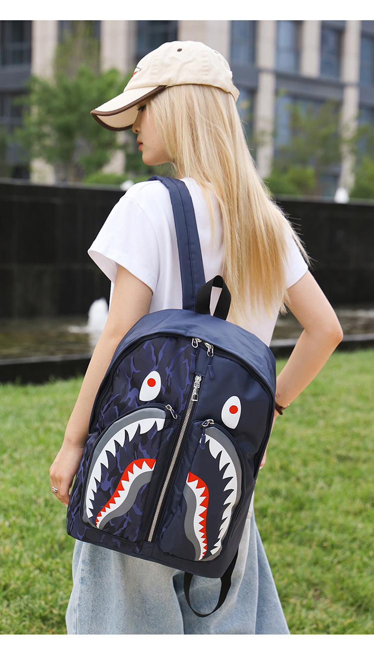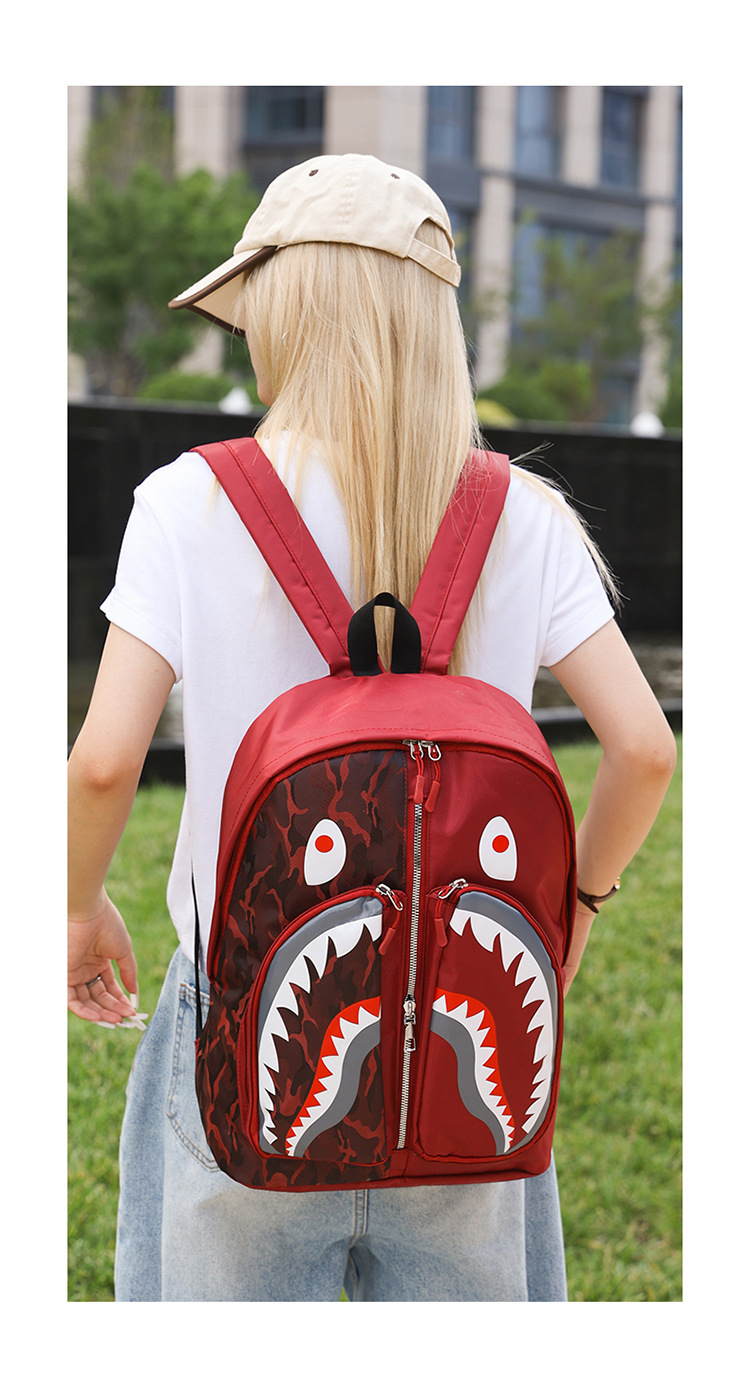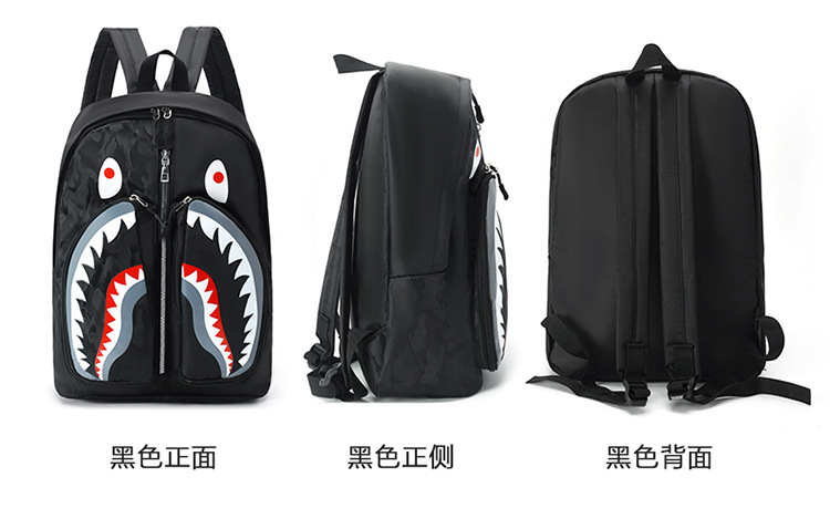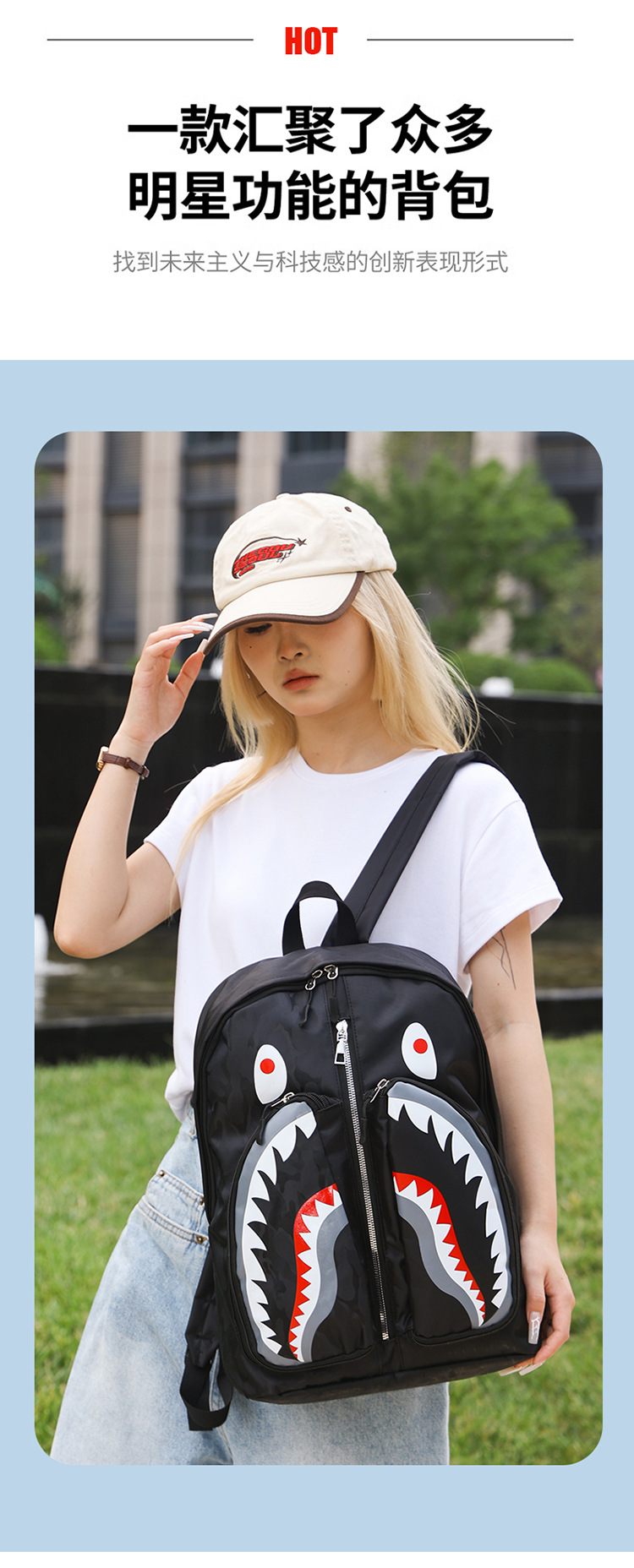 2023 새로운 상어 Schoolbag 베이프 개인화 된 낙서 학생 배낭 남성과 여성의 패션 유행 배낭