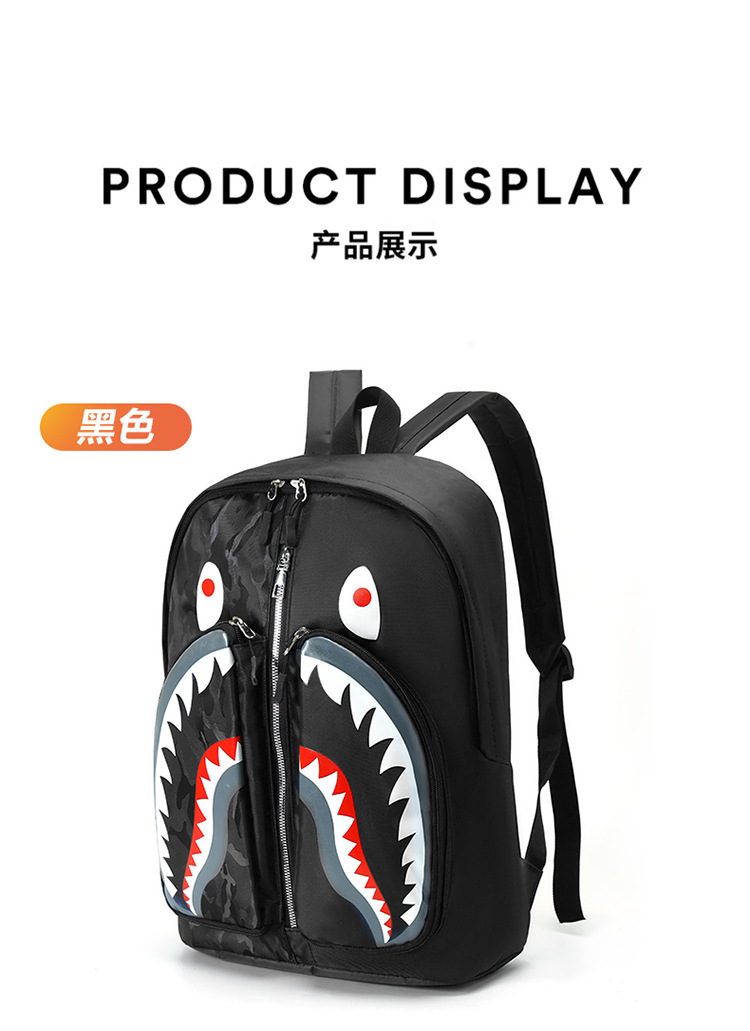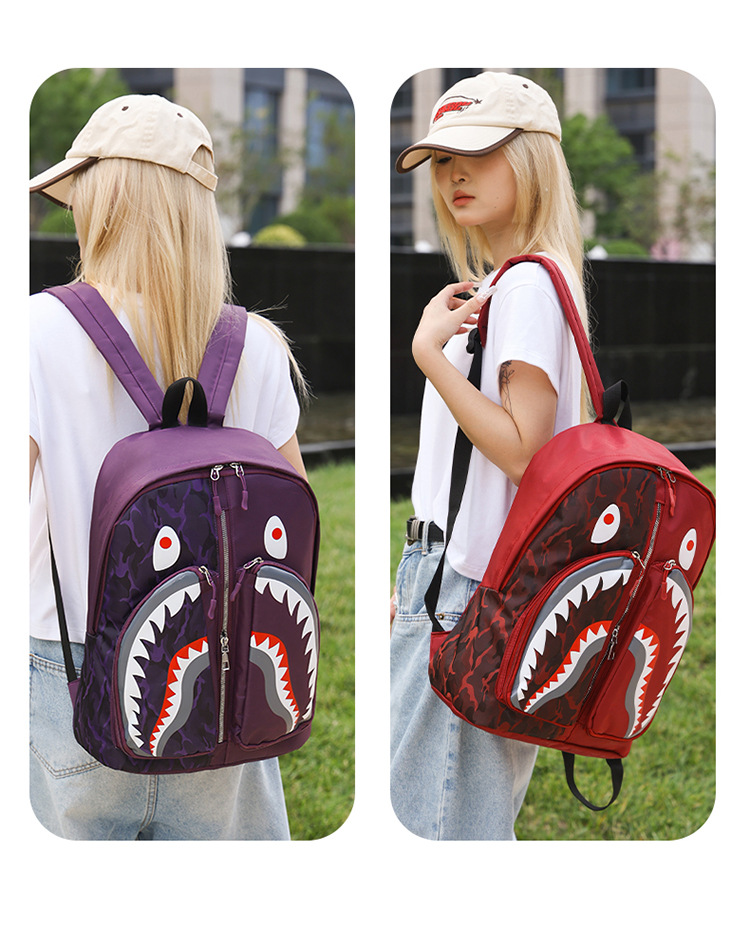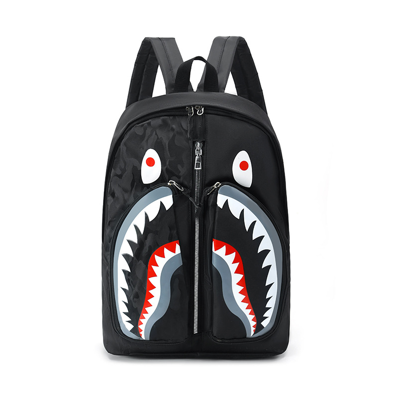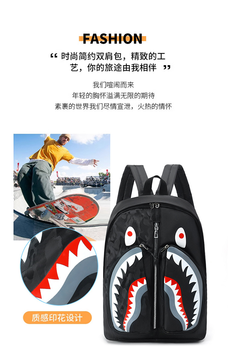 2023 새로운 상어 Schoolbag 베이프 개인화 된 낙서 학생 배낭 남성과 여성의 패션 유행 배낭