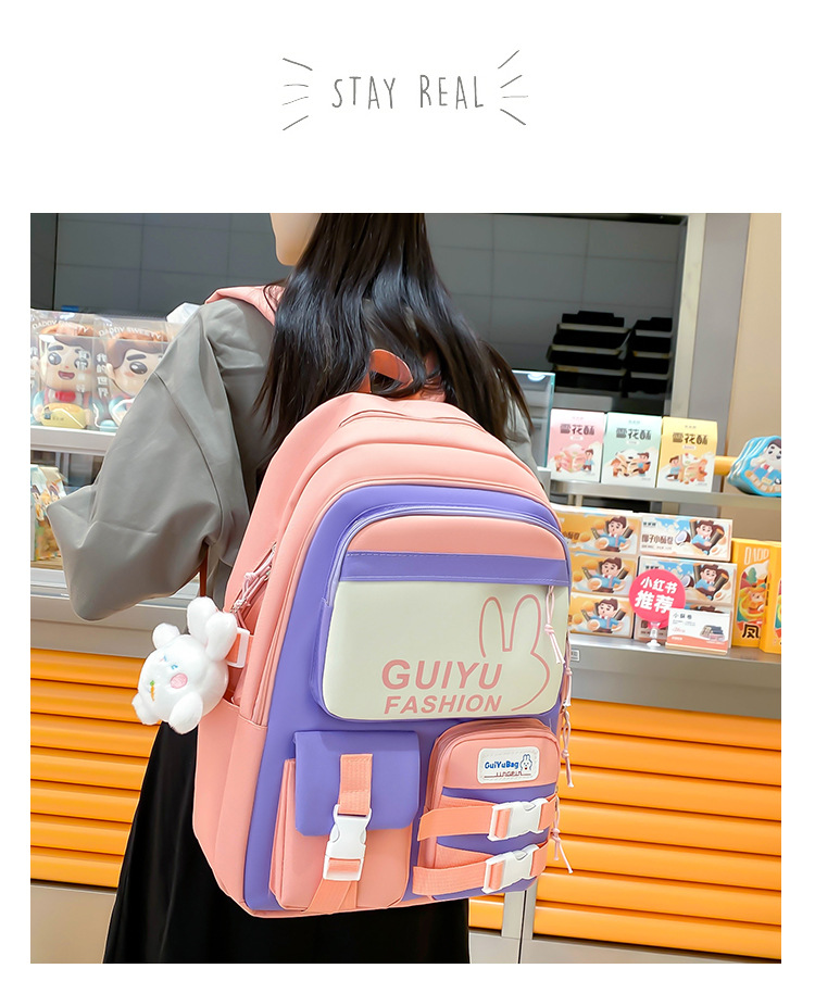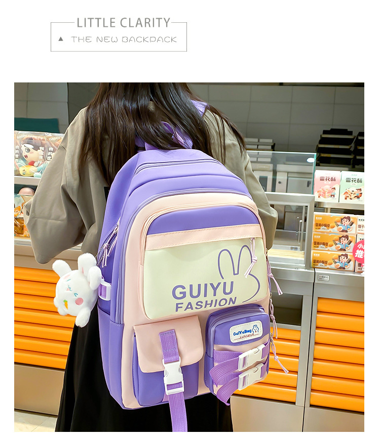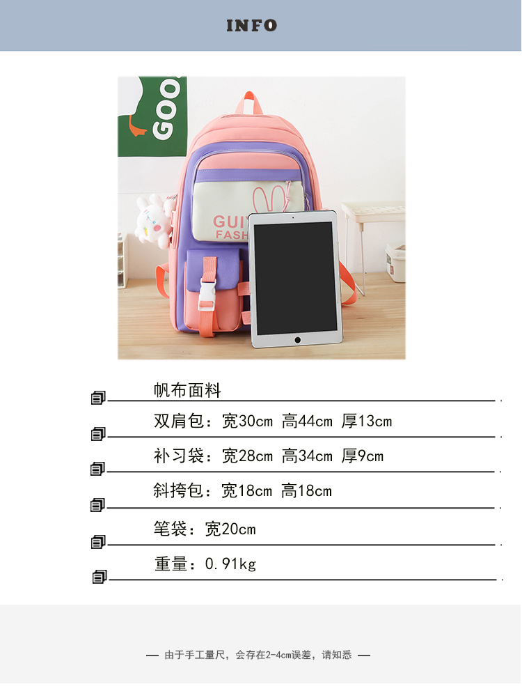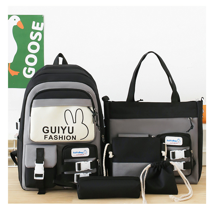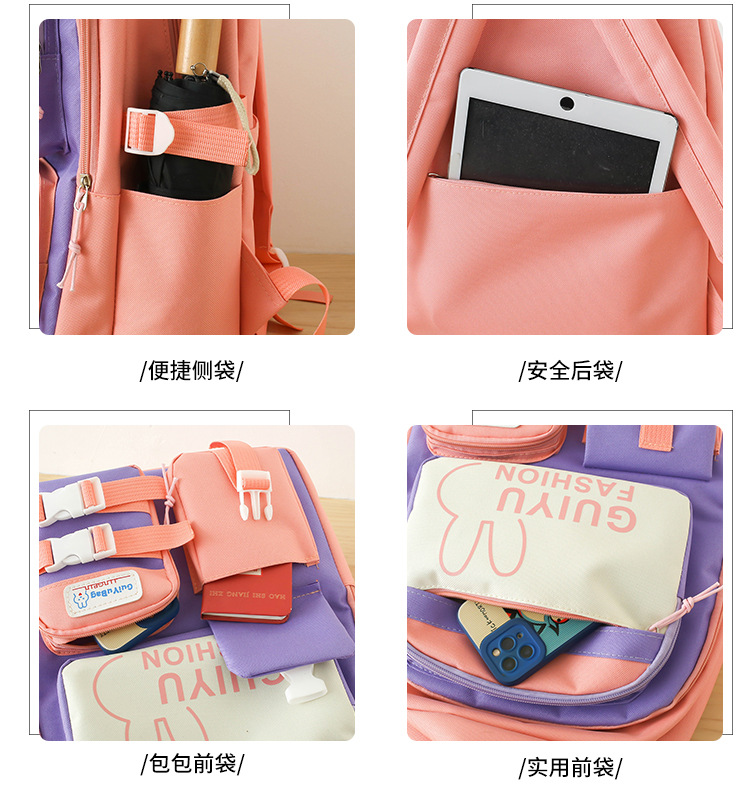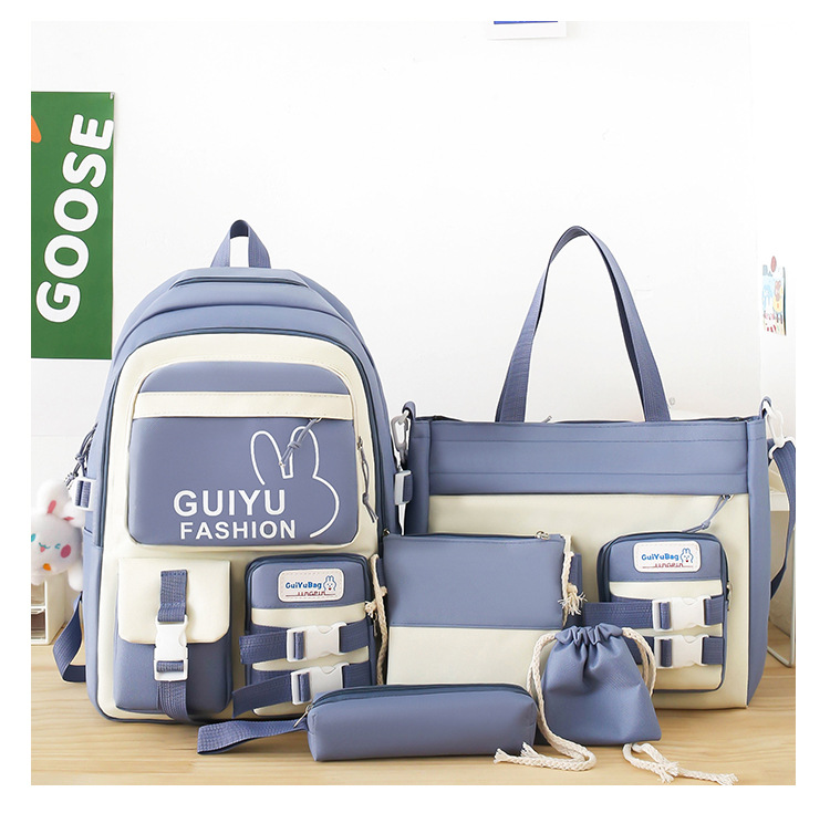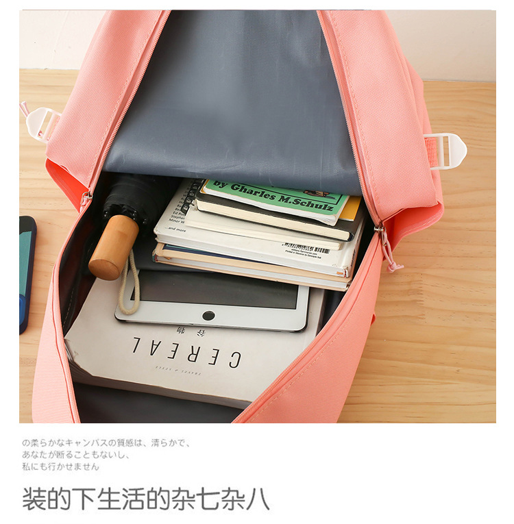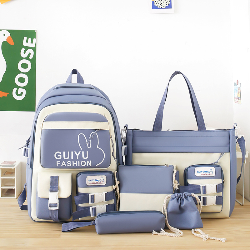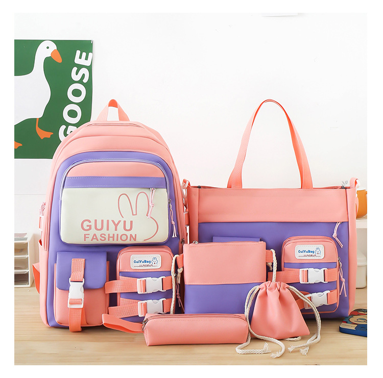 새로운 한국 스타일 소녀 배낭 만화 귀여운 경량 초등학교 스쿨백 5 피스 세트 여성을위한 중학교 캠퍼스 배낭