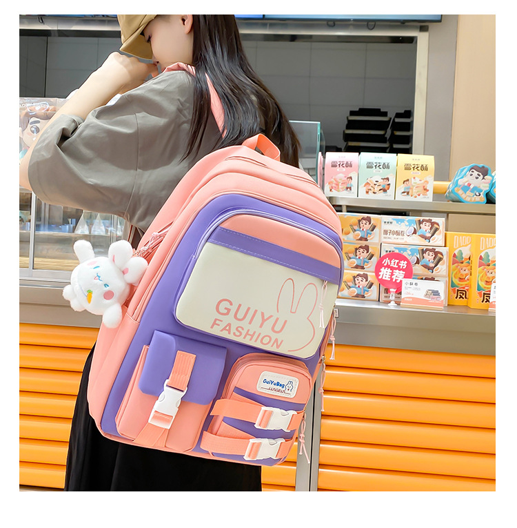 새로운 한국 스타일 소녀 배낭 만화 귀여운 경량 초등학교 스쿨백 5 피스 세트 여성을위한 중학교 캠퍼스 배낭스토어 가기