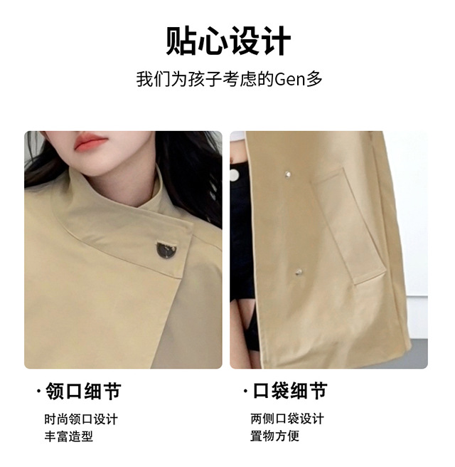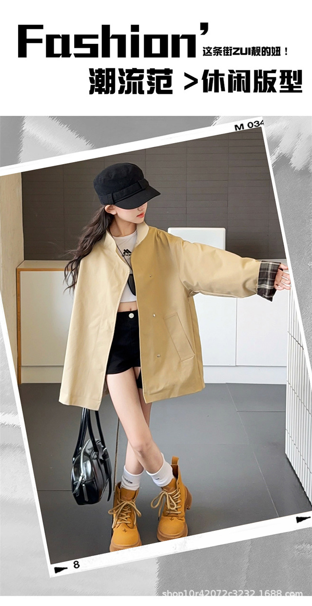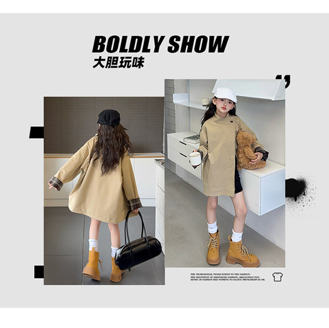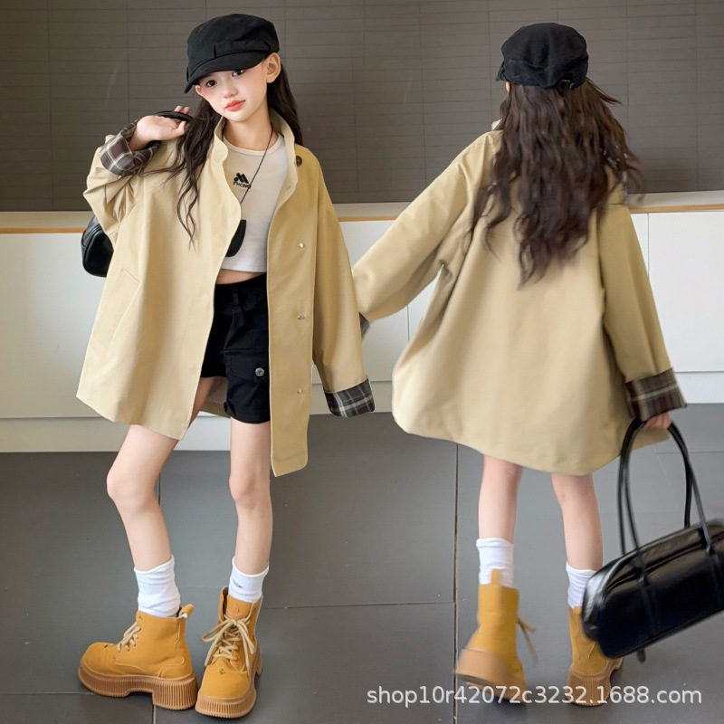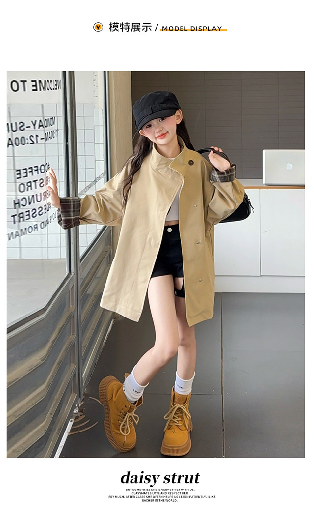 걸스 칼리지 스타일 옷깃 윈드 브레이커 봄 새로운 면 단일 가슴 대형 어린이를위한 중간 길이의 허리 코트스토어 가기