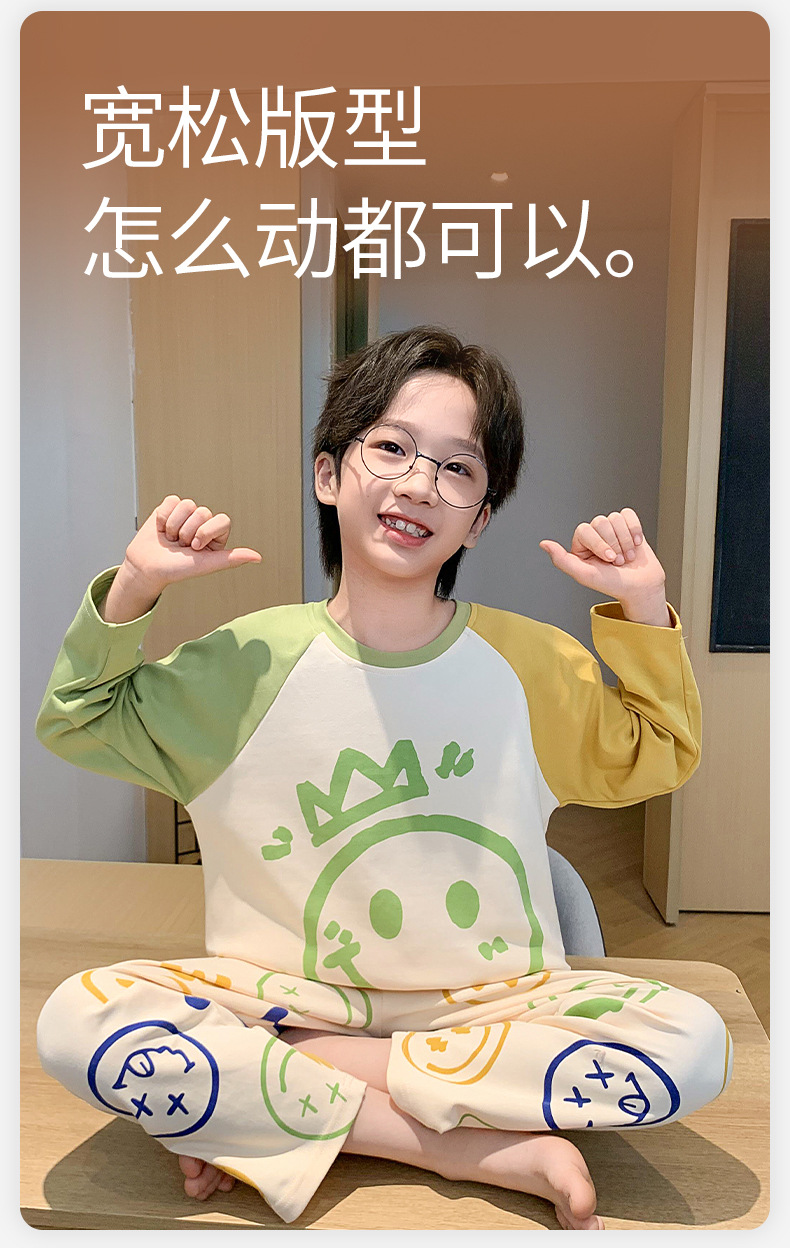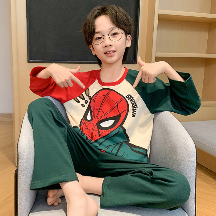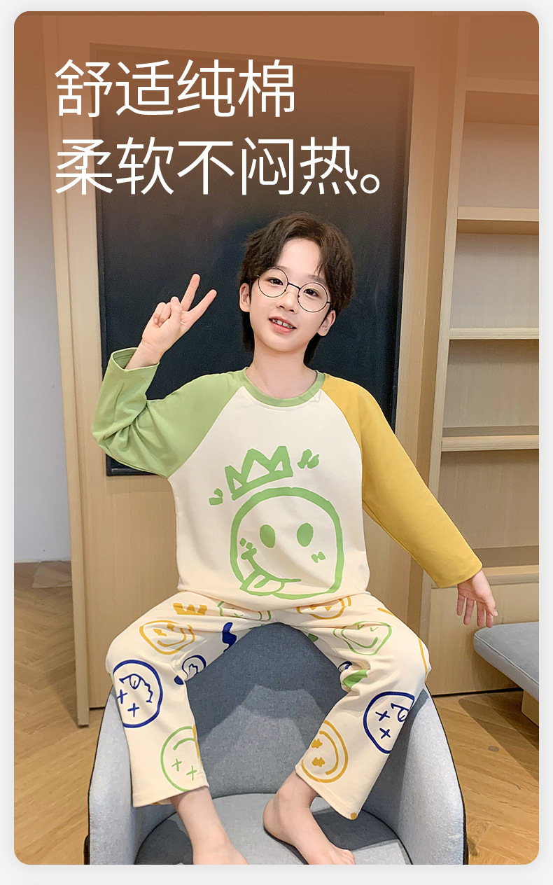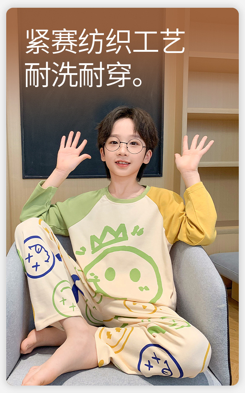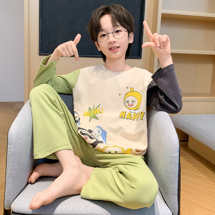 어린이 잠옷 소년 봄과 가을 여름 얇은 긴 소매 만화 소년 캐주얼 편안한 둥근 목 세트 에어컨 홈 옷스토어 가기