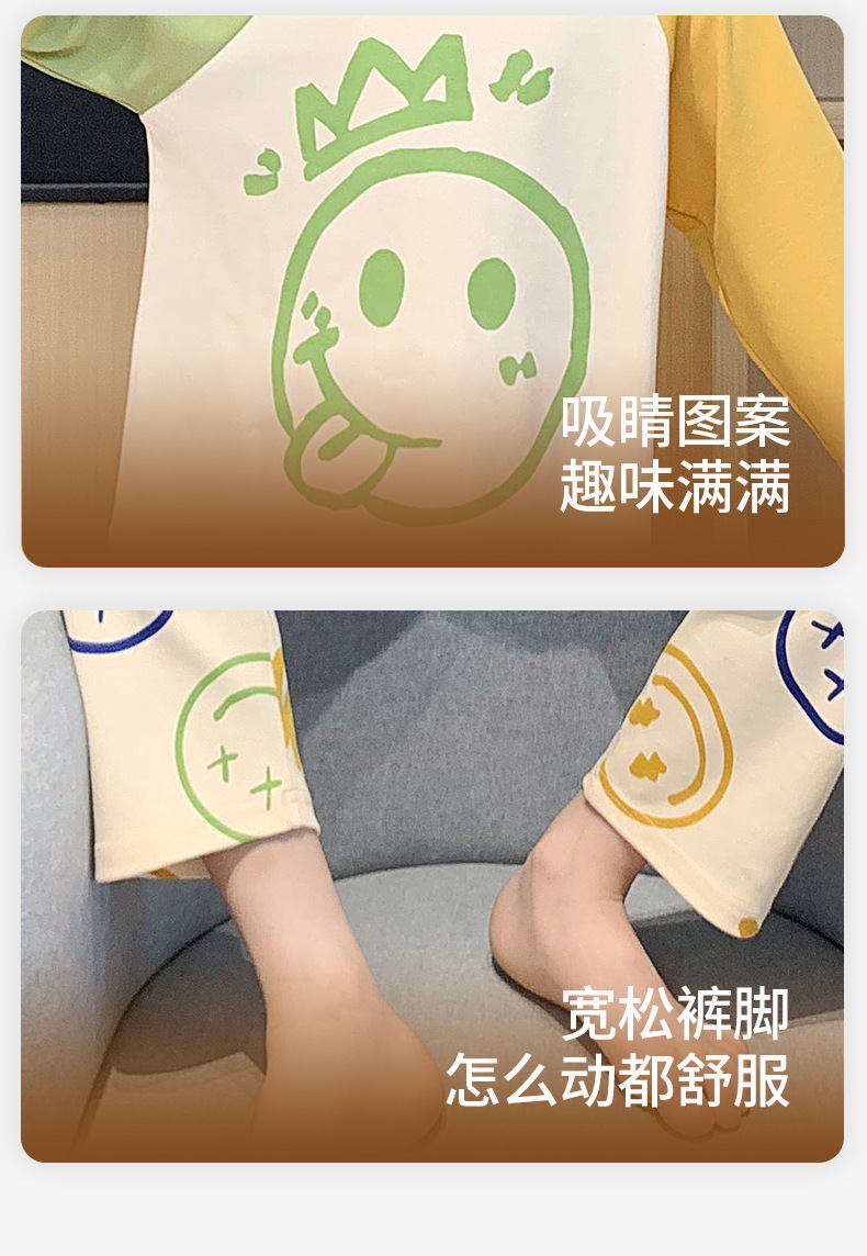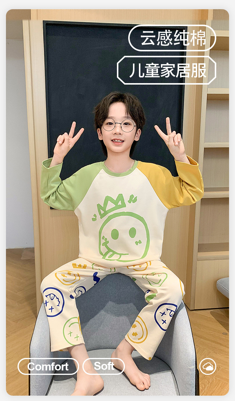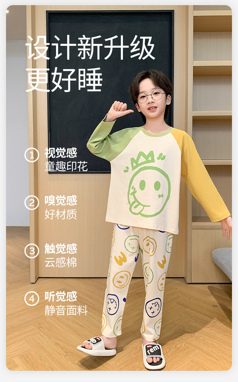 어린이 잠옷 소년 봄과 가을 여름 얇은 긴 소매 만화 소년 캐주얼 편안한 둥근 목 세트 에어컨 홈 옷스토어 가기