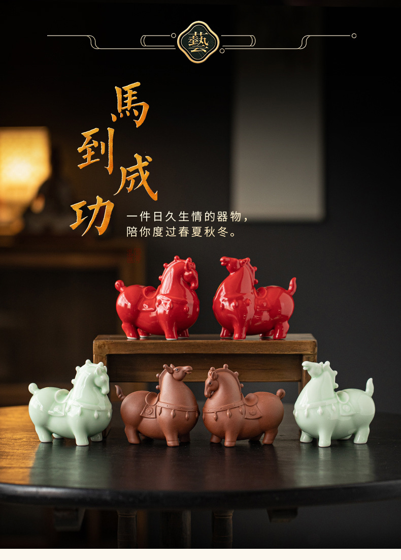 Ma to Chenggong 세라믹 작은 탕 말 장식품 새로운 중국 거실 TV 캐비닛 장식 스몰 사이즈 조디악 말 마스코트스토어 가기