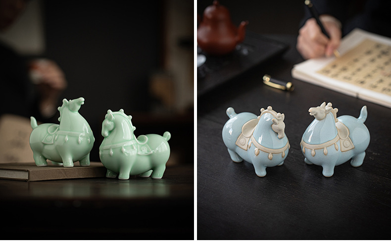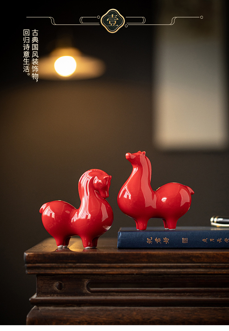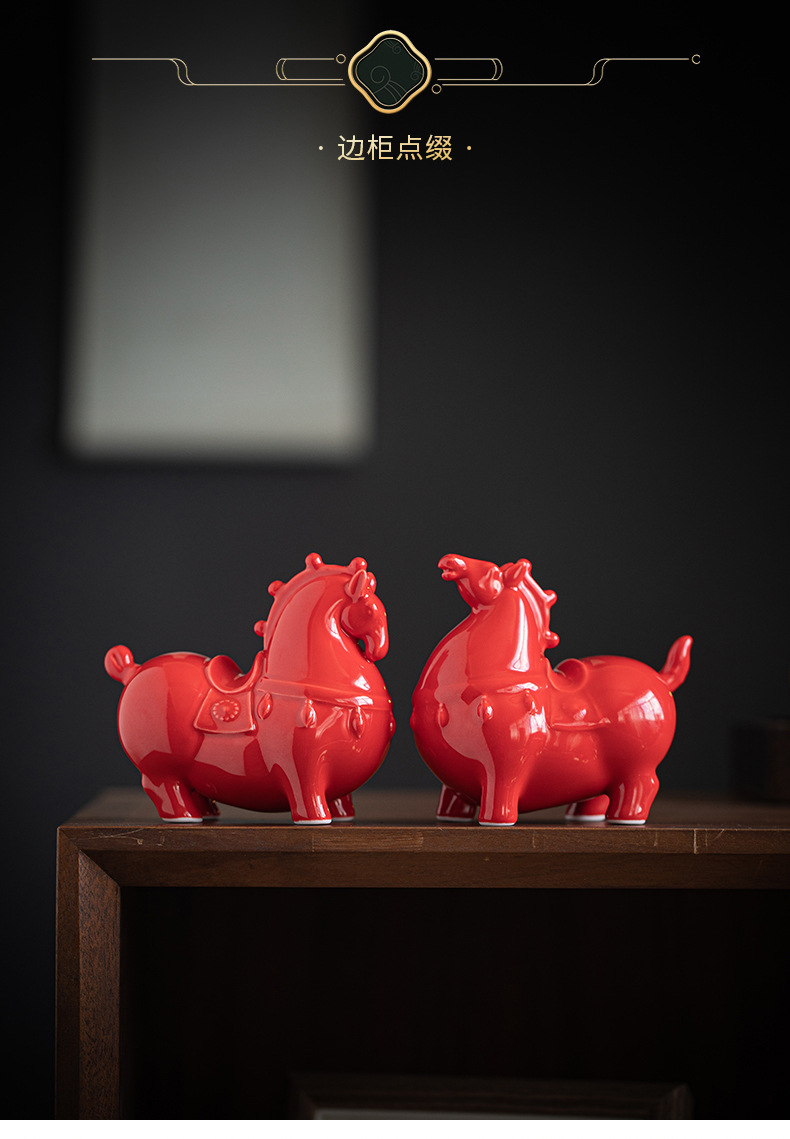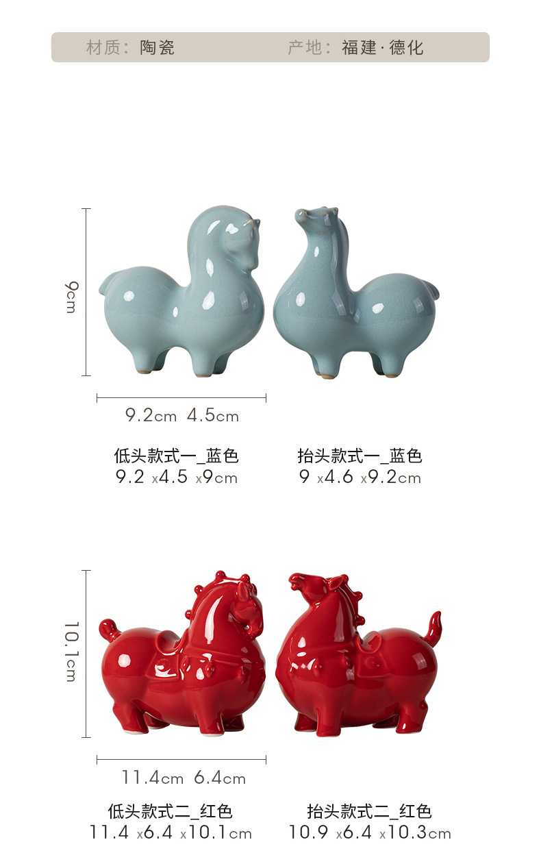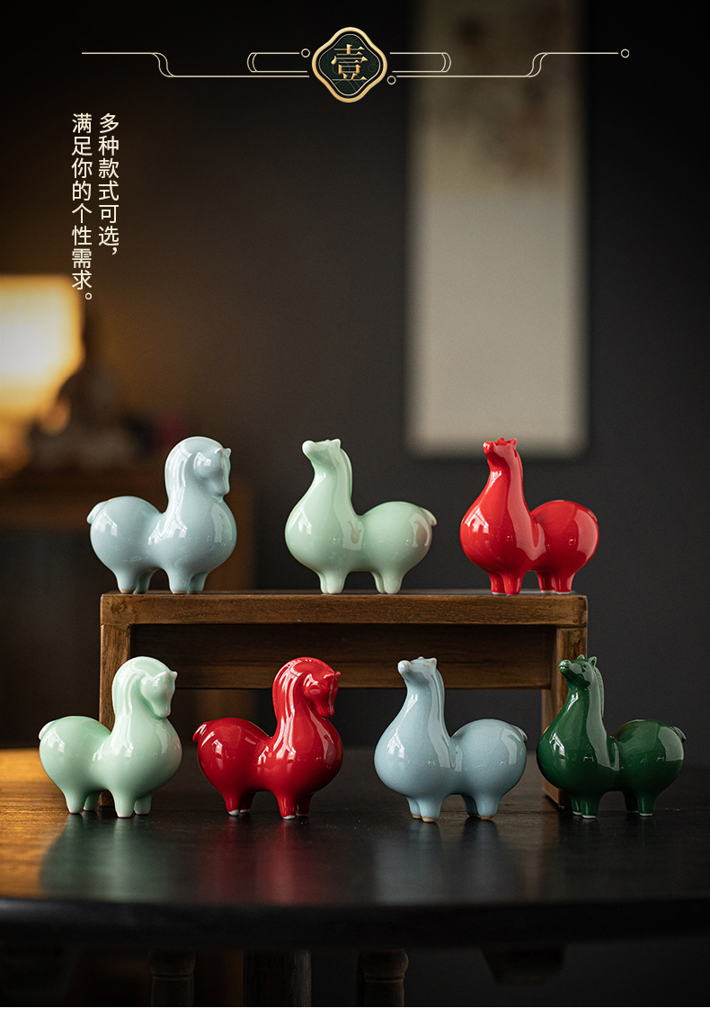 Ma to Chenggong 세라믹 작은 탕 말 장식품 새로운 중국 거실 TV 캐비닛 장식 스몰 사이즈 조디악 말 마스코트