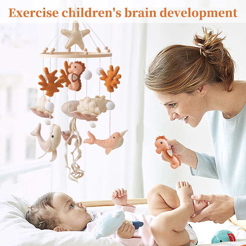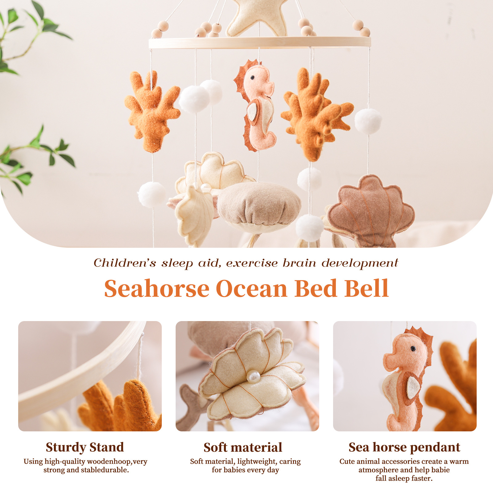 국경을 넘는 새로운 해양 동물 아기 침대 벨, 고래와 해마 수제 풍경종, 아기 수면 유도 및 진정용 딸랑이스토어 가기