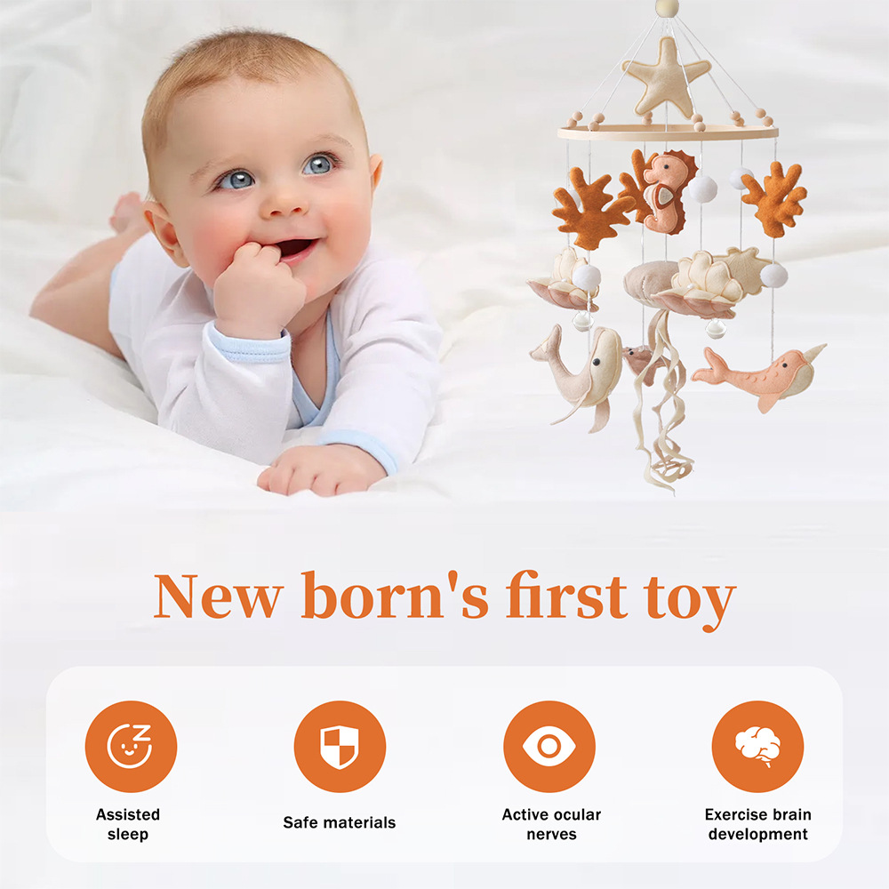 국경을 넘는 새로운 해양 동물 아기 침대 벨, 고래와 해마 수제 풍경종, 아기 수면 유도 및 진정용 딸랑이