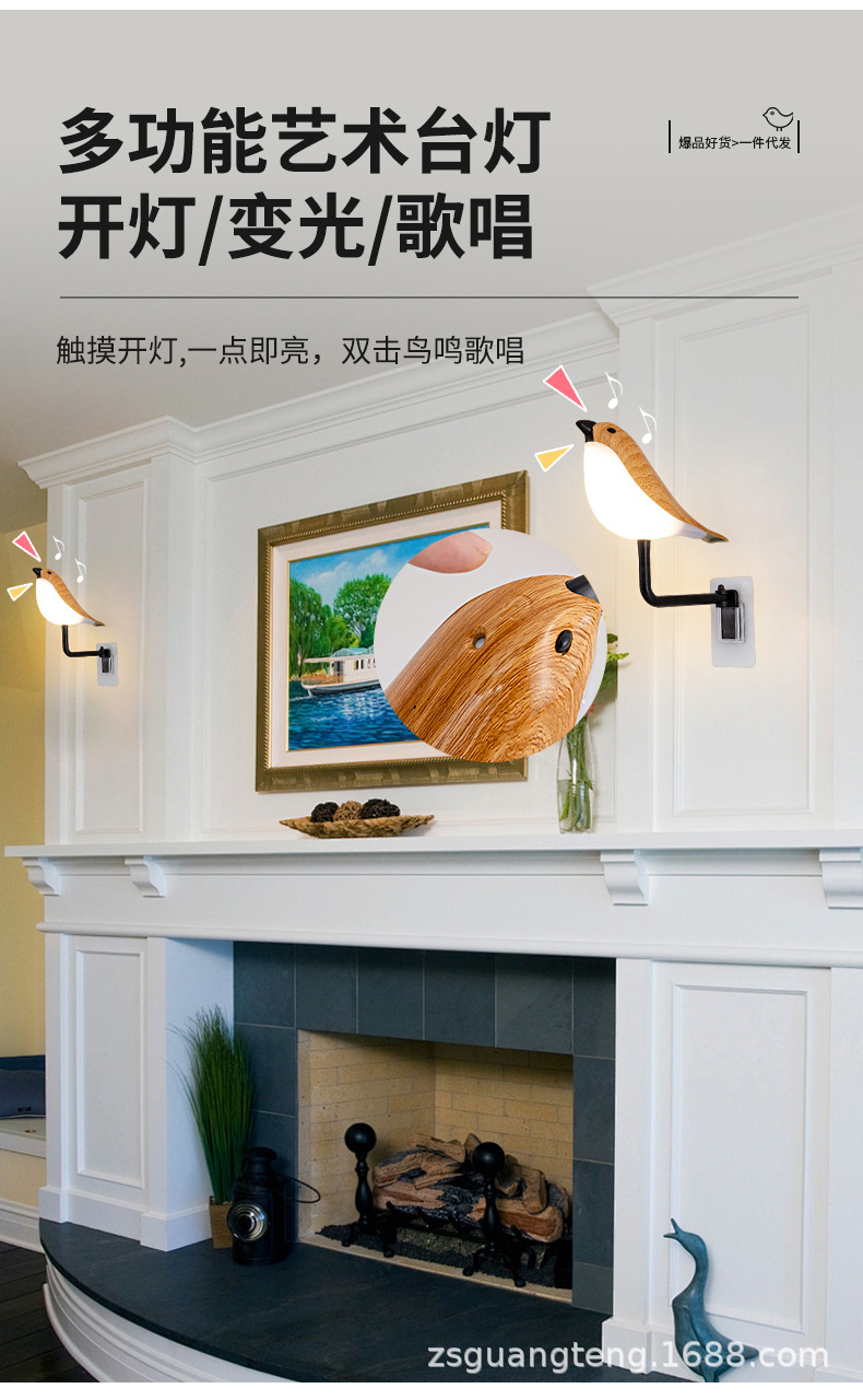 새로운 창조적 인 led 사운드 USB 충전 까치 램프 야간 조명 거실 침대 옆 아로마 테라피 장식 벽 램프