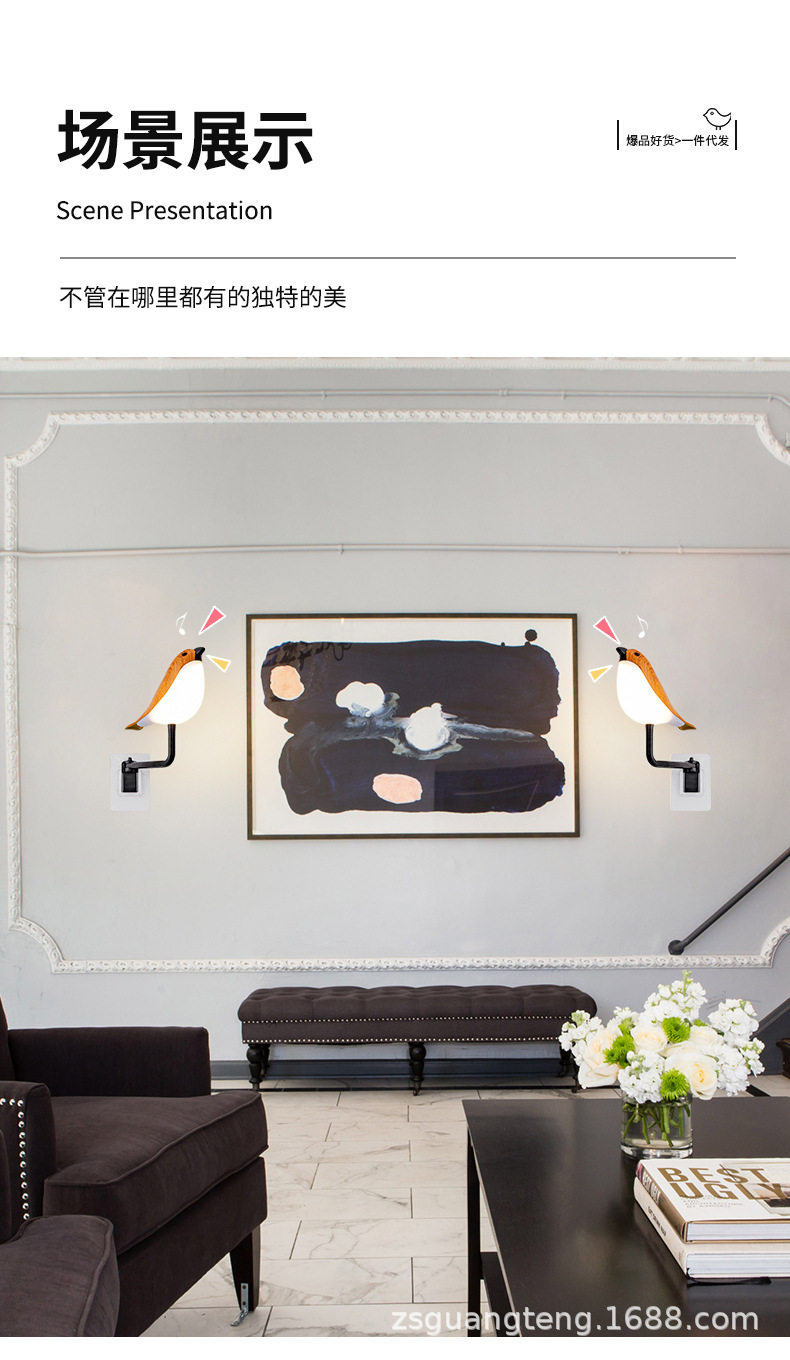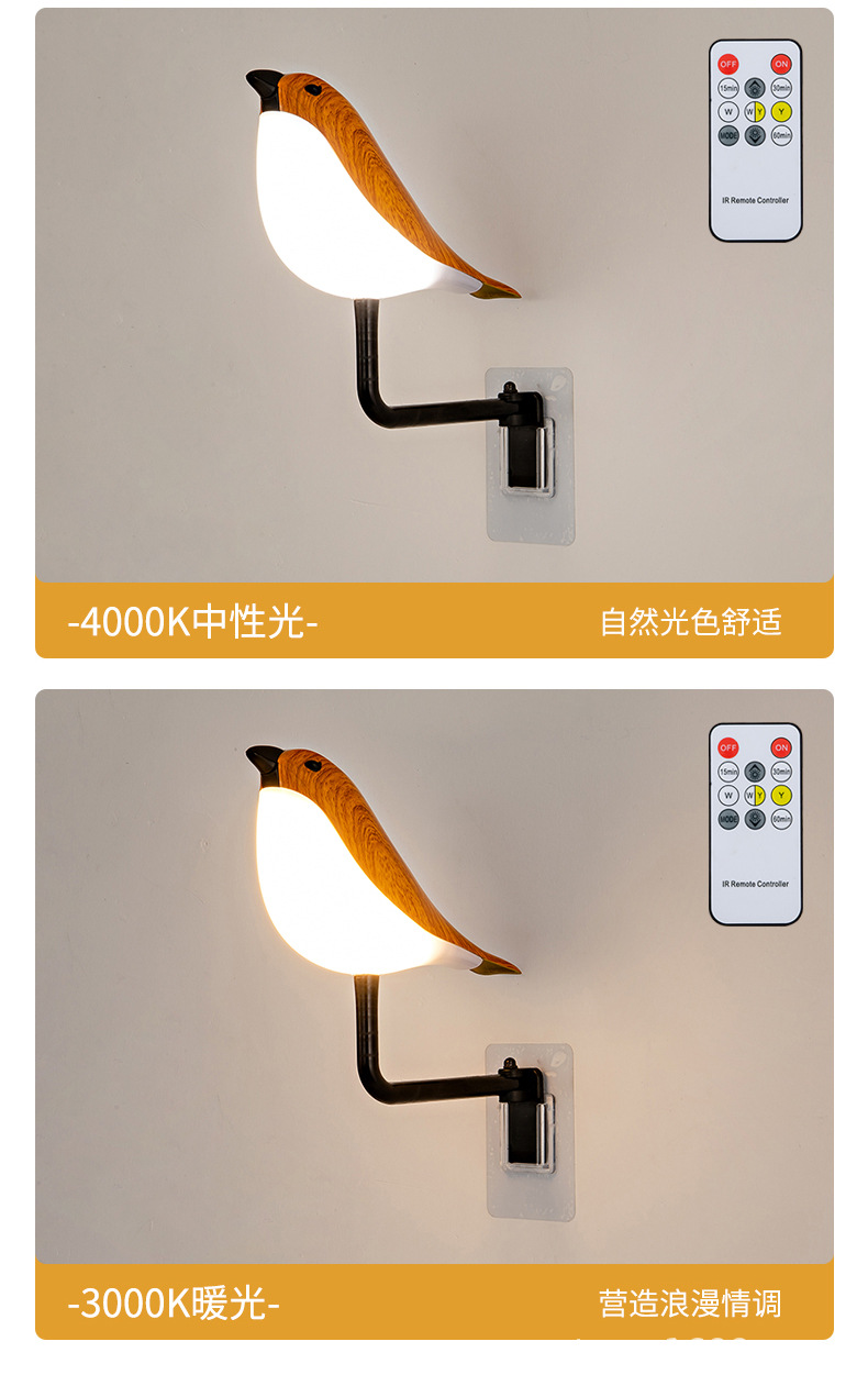 새로운 창조적 인 led 사운드 USB 충전 까치 램프 야간 조명 거실 침대 옆 아로마 테라피 장식 벽 램프스토어 가기
