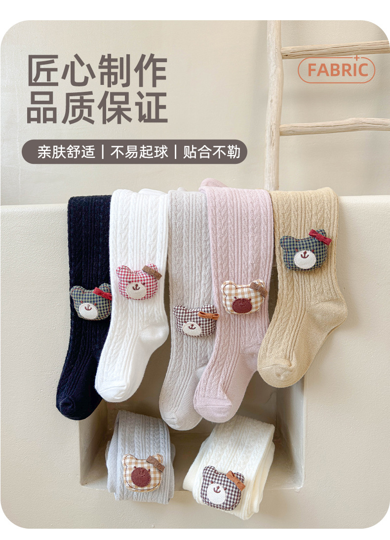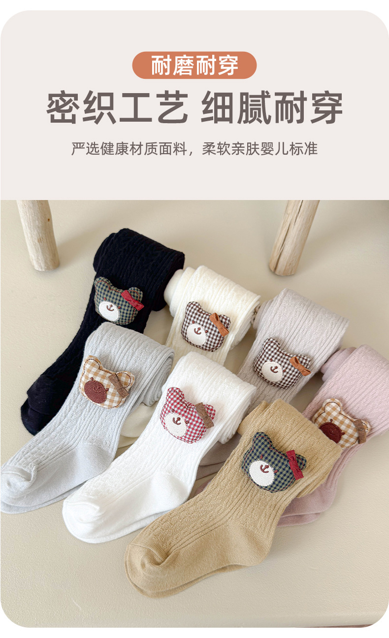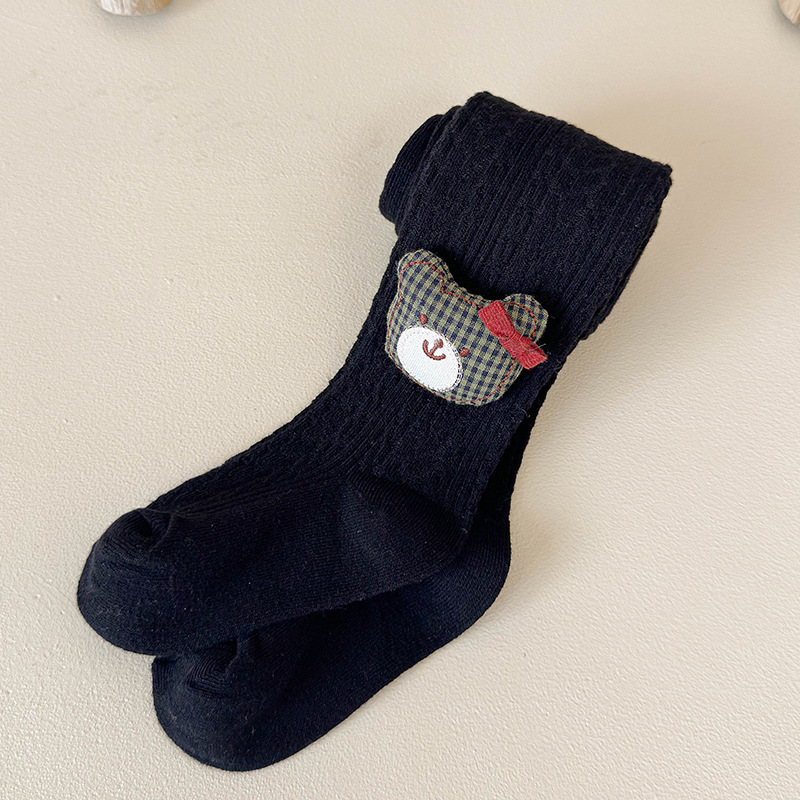 새로운 어린이 봄과 가을 컬러 밀 트위스트 한국 스타일 사이드 체크 보우 도라 베어 걸스 팬티 스타킹