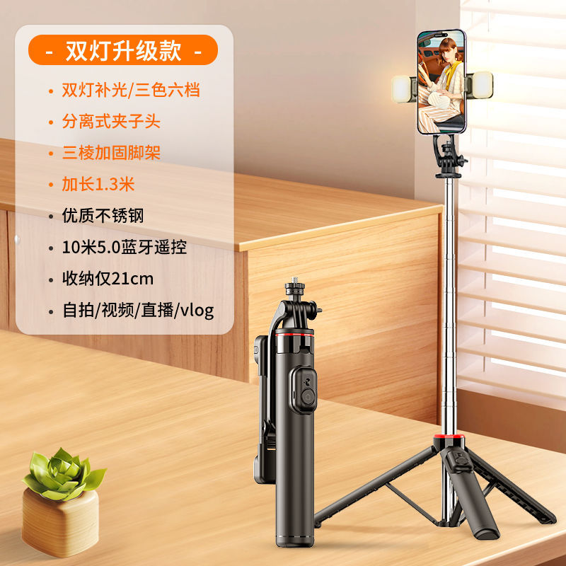 • 【C12D- 1.3m 】듀얼 필 라이트 + 알루미늄 합금 폴 + 삼각대 + 블루투스 리모컨 + 1/4 호환 인터페이스