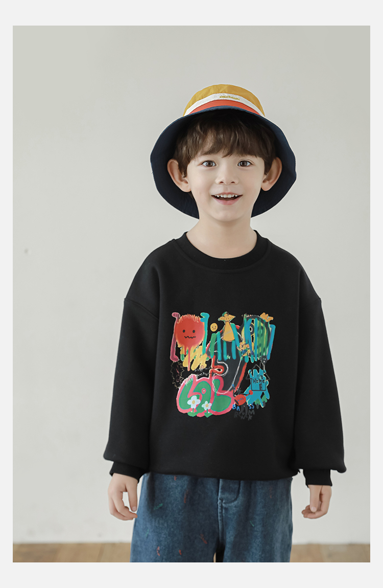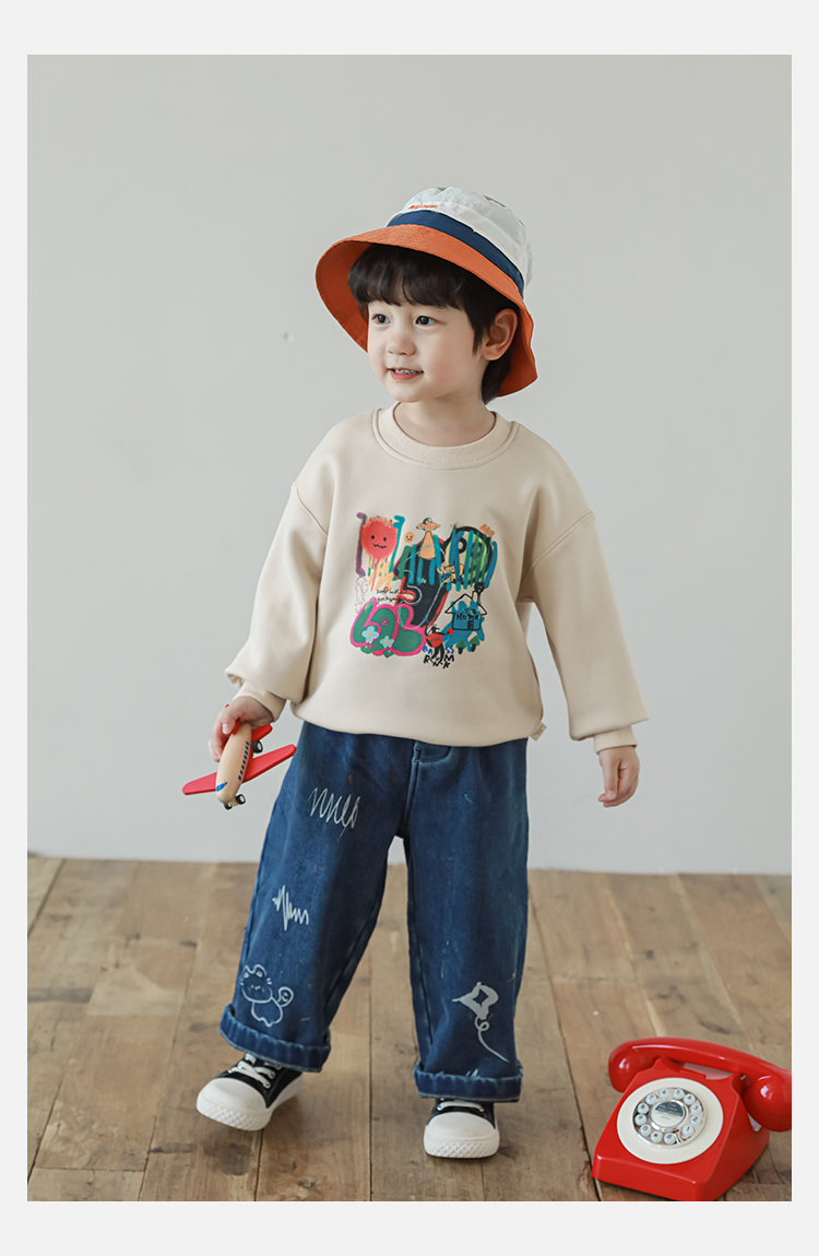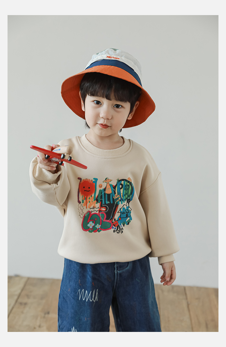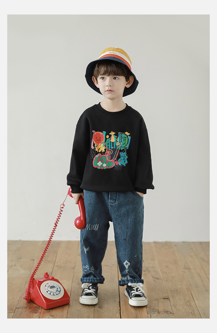 Wurib One Boy 2024 새로운 긴 소매 라운드 넥 그래피티 스웨트 셔츠 가을 인기 느슨한 캐주얼 어린이 탑
