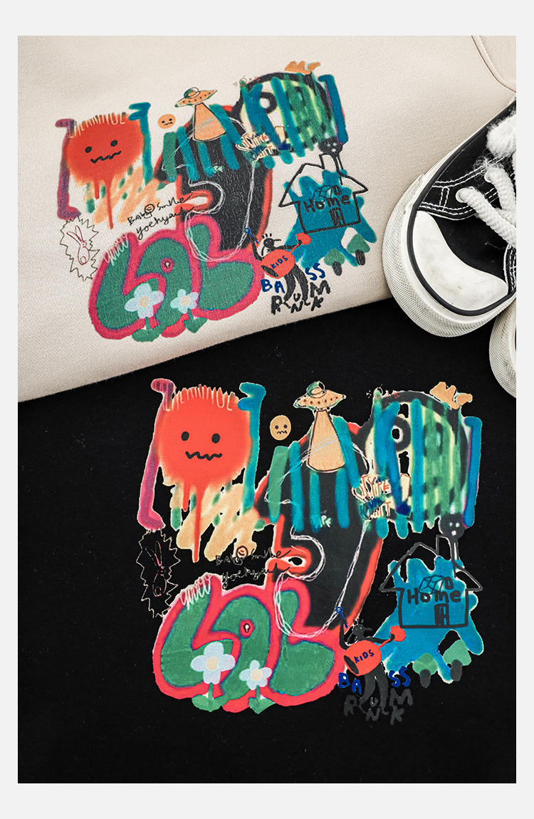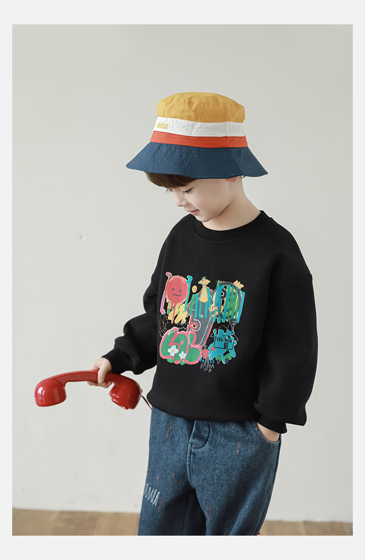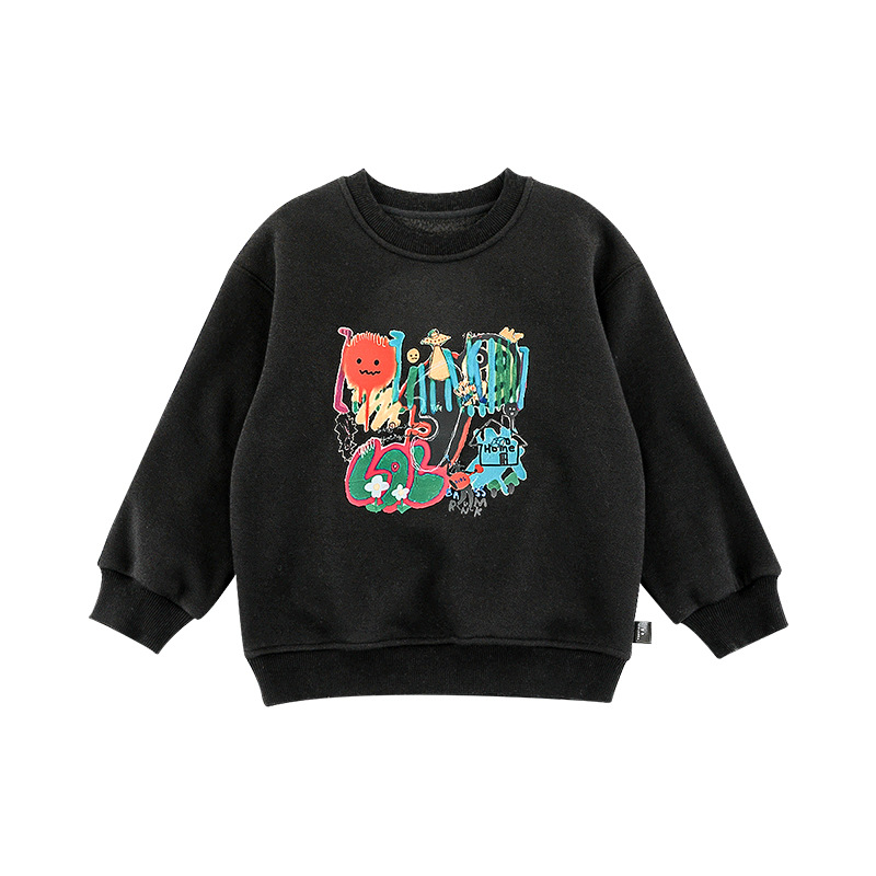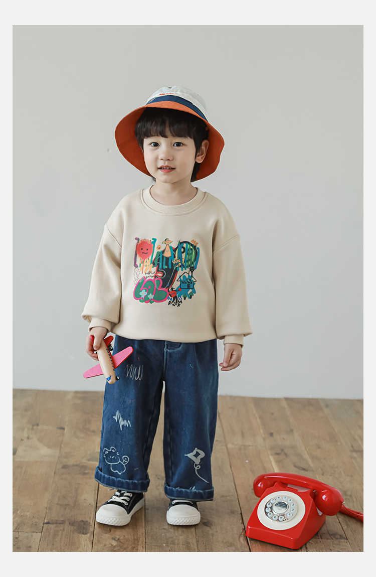 Wurib One Boy 2024 새로운 긴 소매 라운드 넥 그래피티 스웨트 셔츠 가을 인기 느슨한 캐주얼 어린이 탑