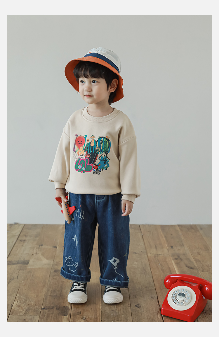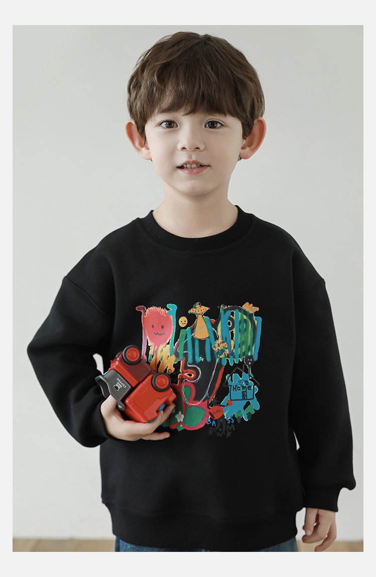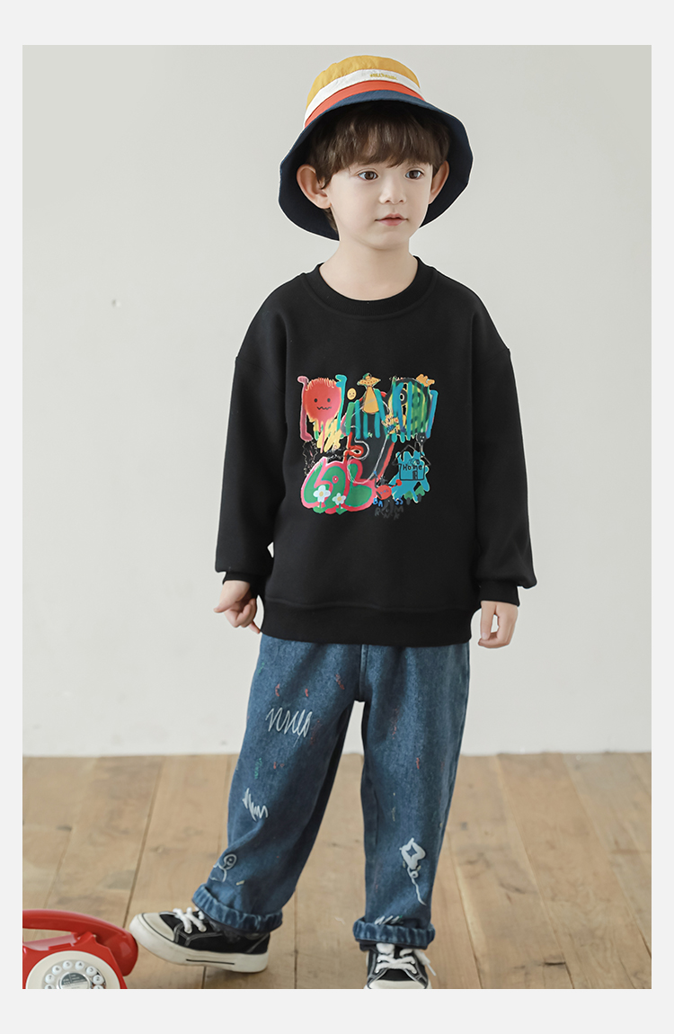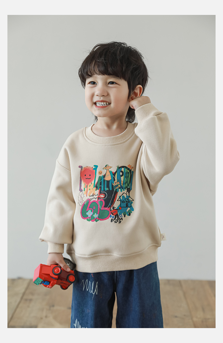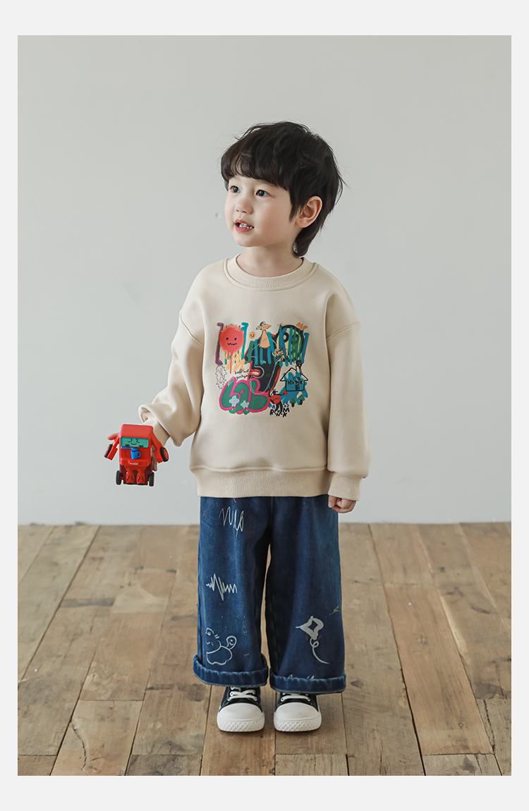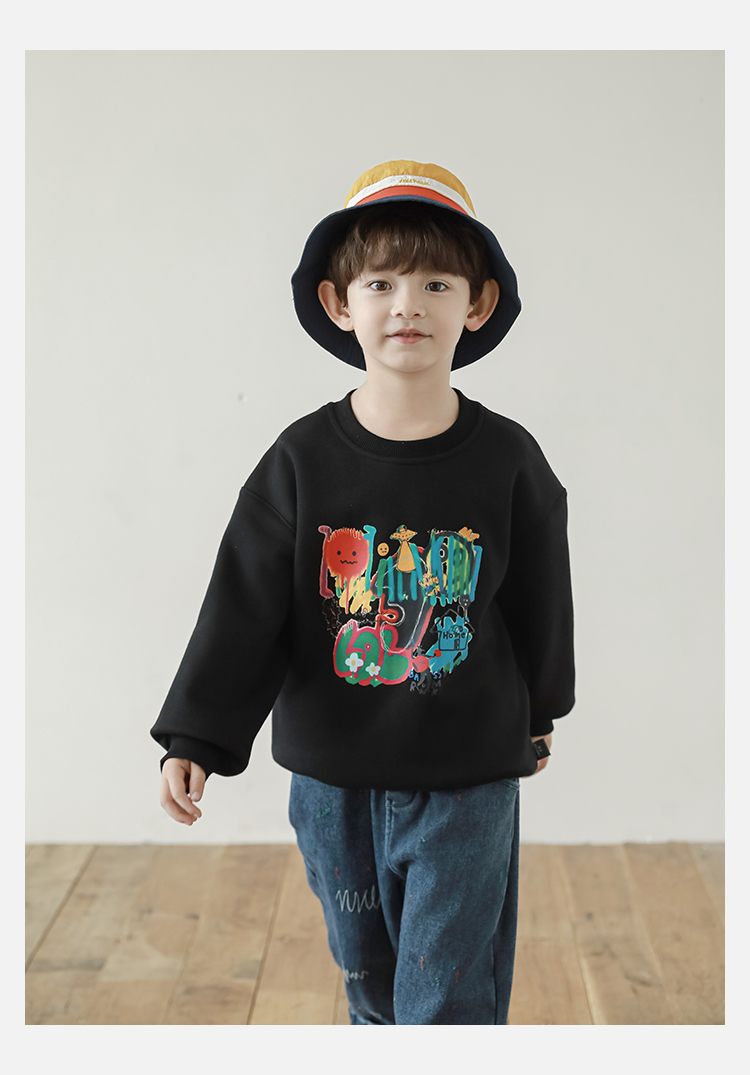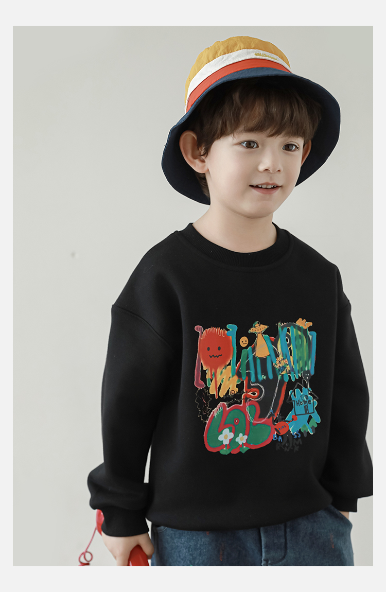 Wurib One Boy 2024 새로운 긴 소매 라운드 넥 그래피티 스웨트 셔츠 가을 인기 느슨한 캐주얼 어린이 탑스토어 가기