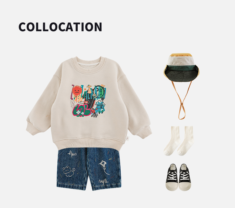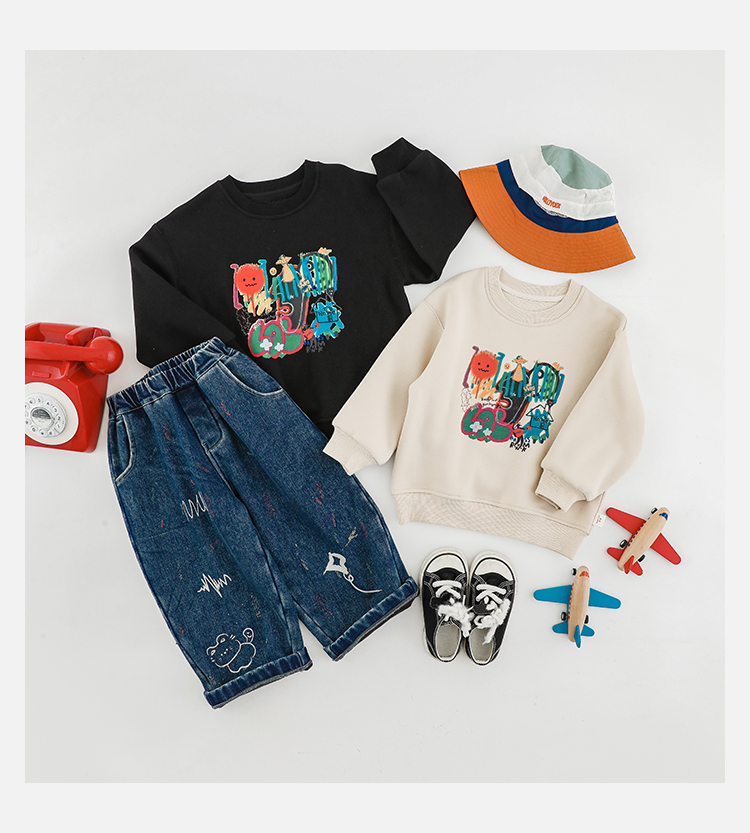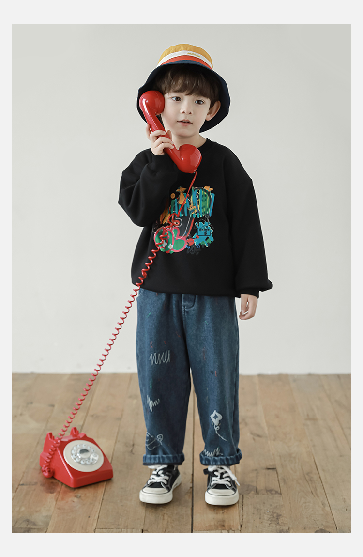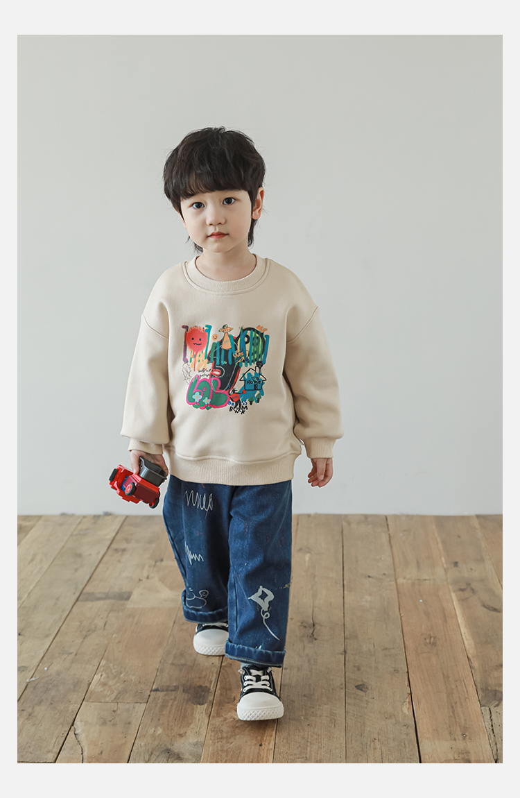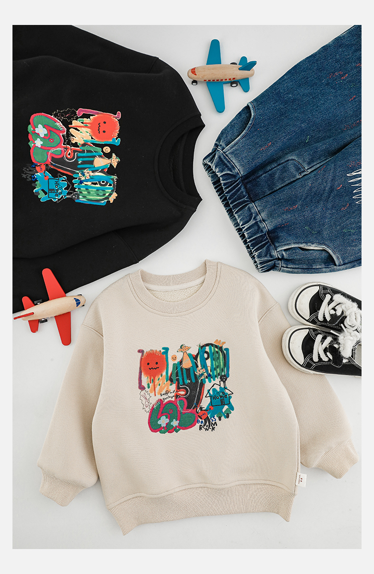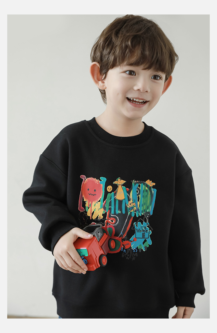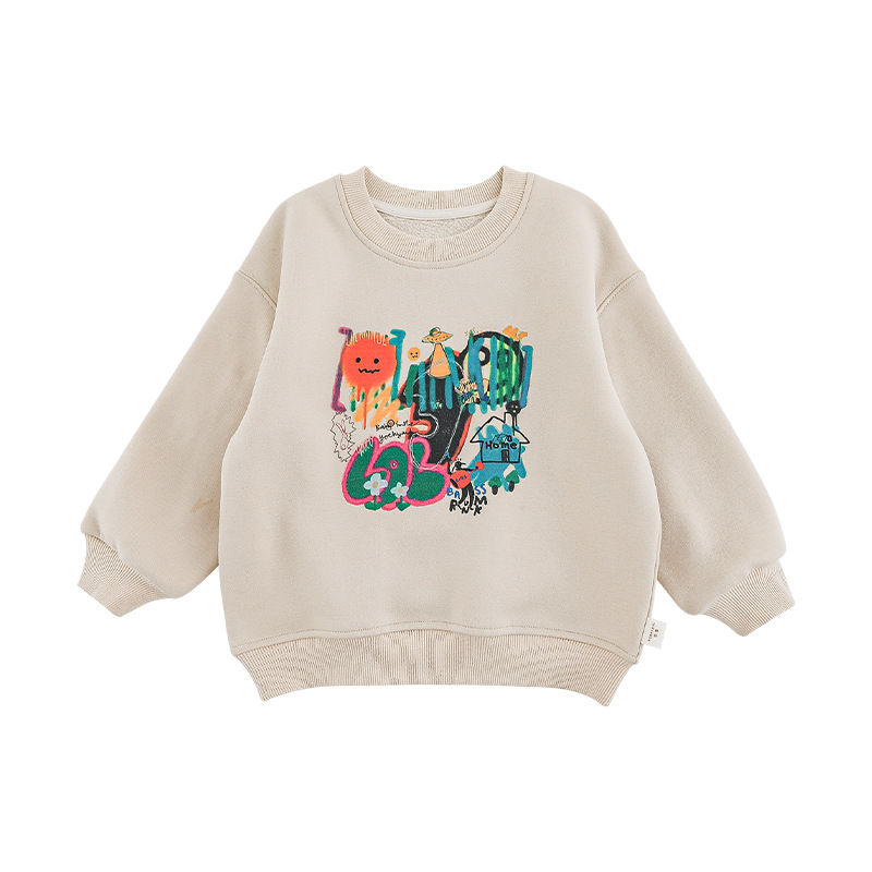 Wurib One Boy 2024 새로운 긴 소매 라운드 넥 그래피티 스웨트 셔츠 가을 인기 느슨한 캐주얼 어린이 탑스토어 가기
