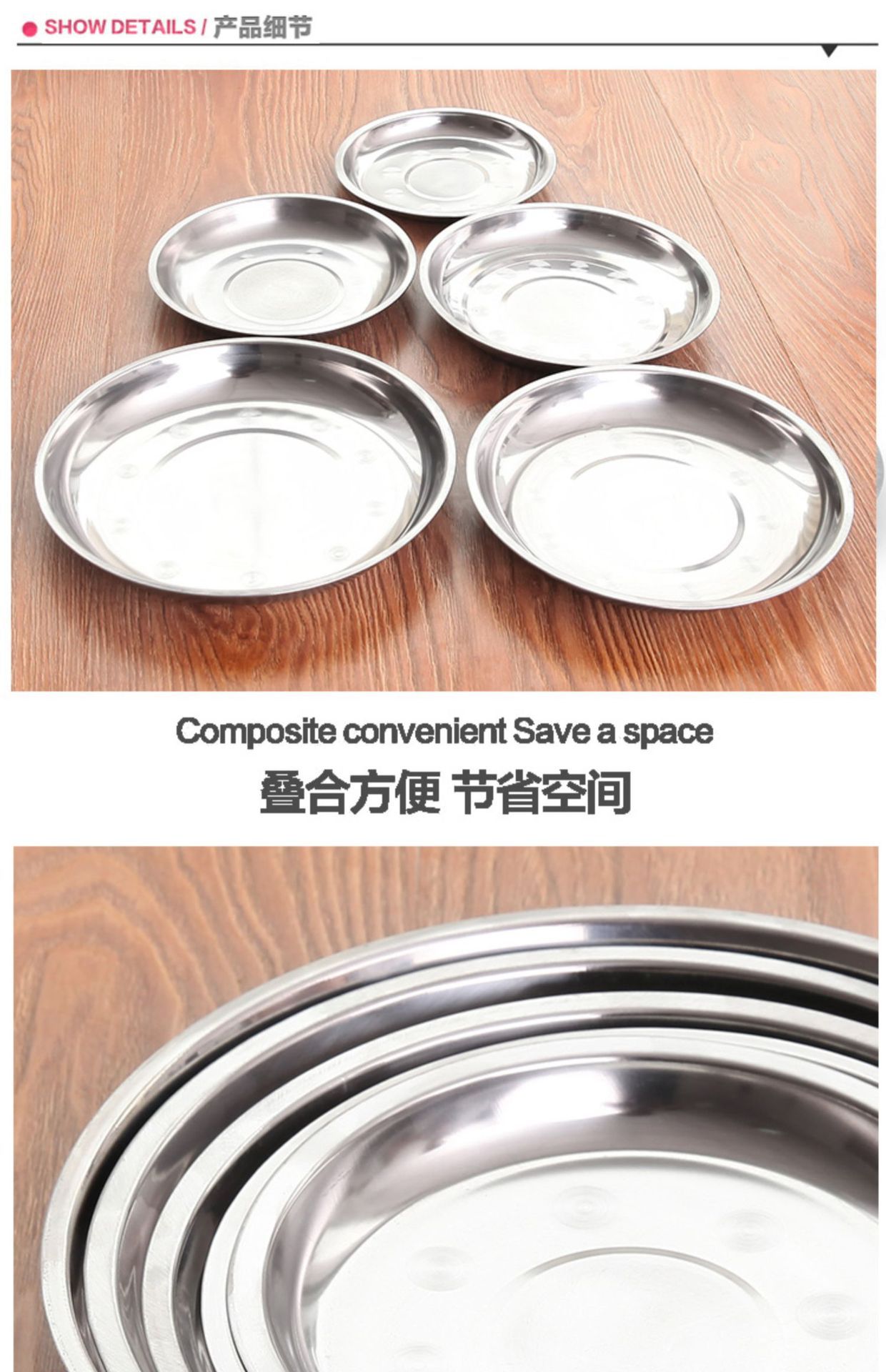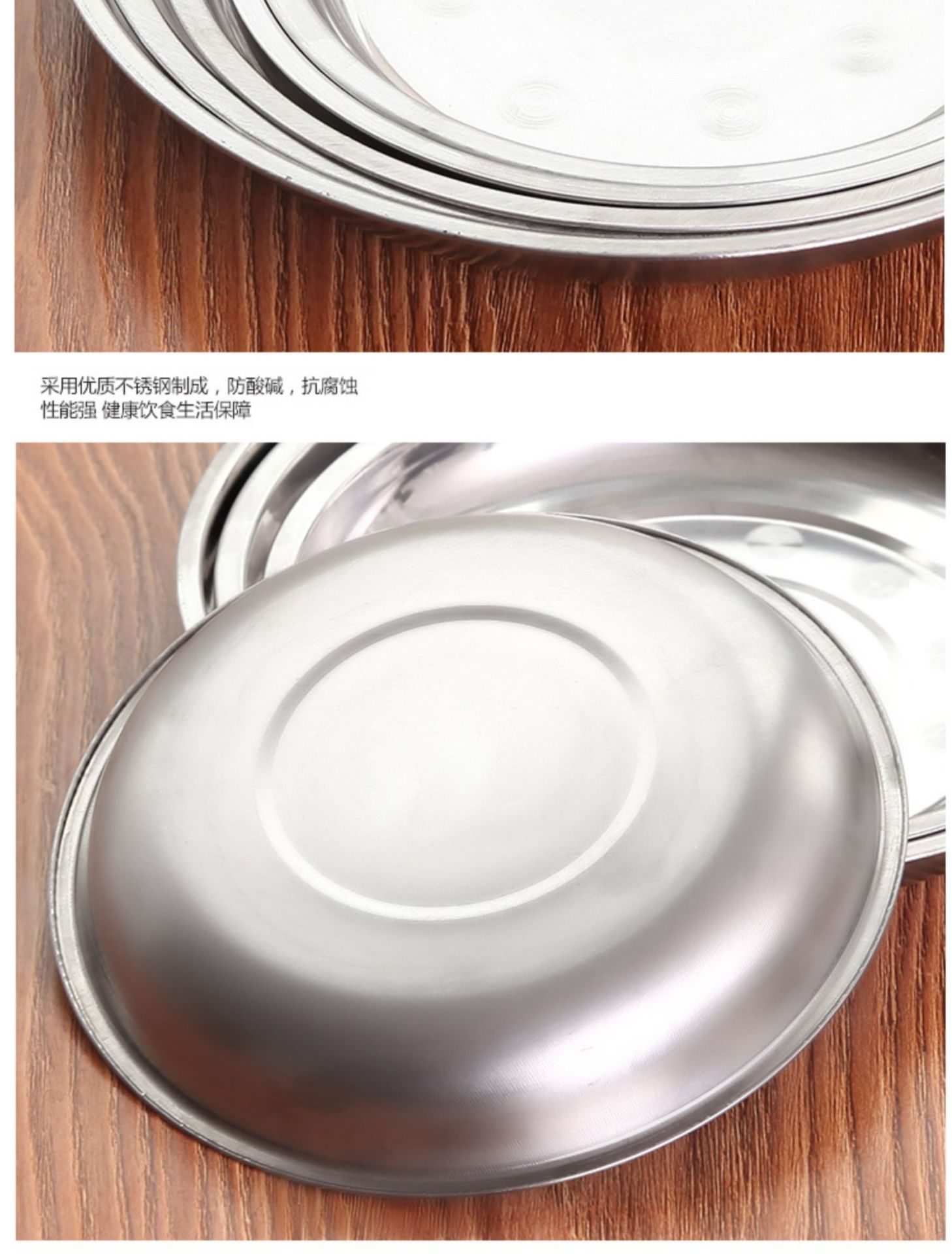 스테인레스 스틸 플레이트 접시 가정용 두꺼운 디스크 플랫 플레이트 철판 얕은 접시 디너 트레이 플랫 플레이트 서빙 플레이트 상업