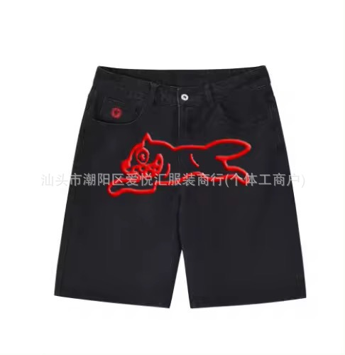 아메리칸 스트리트 힙합 워시 플라잉 도그 프린트 데님 반바지 남성 국경 직접 판매 하이 스트리트 캐주얼 바지 트렌디