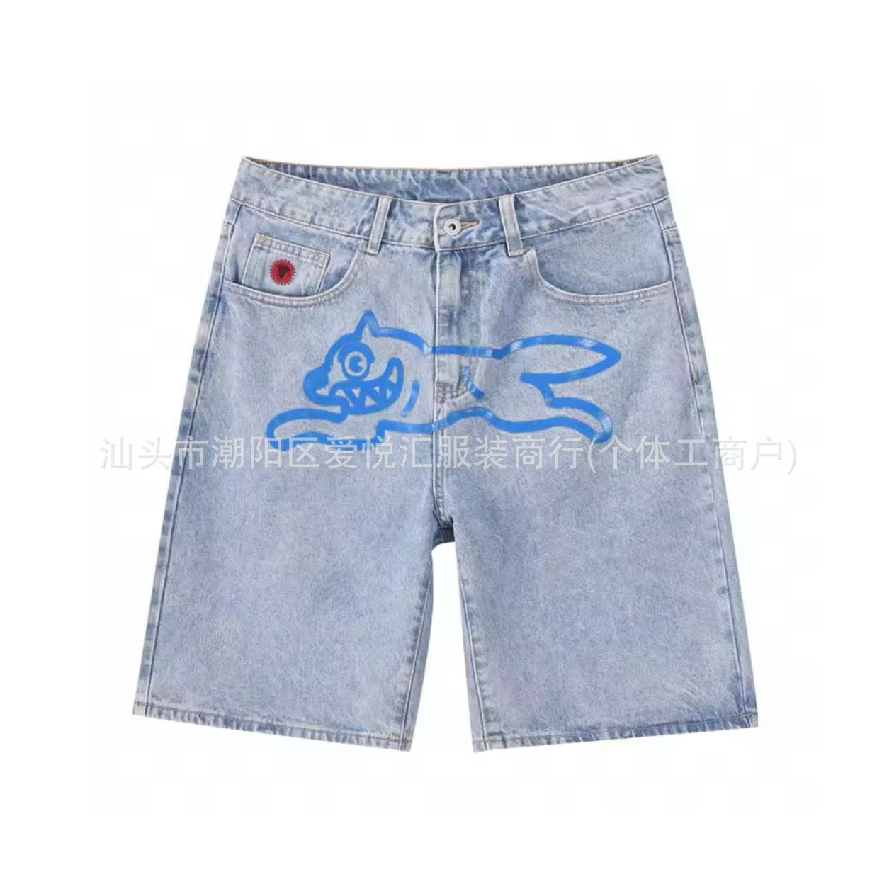 아메리칸 스트리트 힙합 워시 플라잉 도그 프린트 데님 반바지 남성 국경 직접 판매 하이 스트리트 캐주얼 바지 트렌디스토어 가기