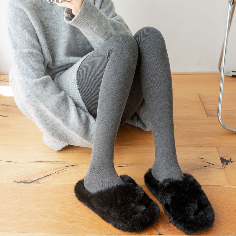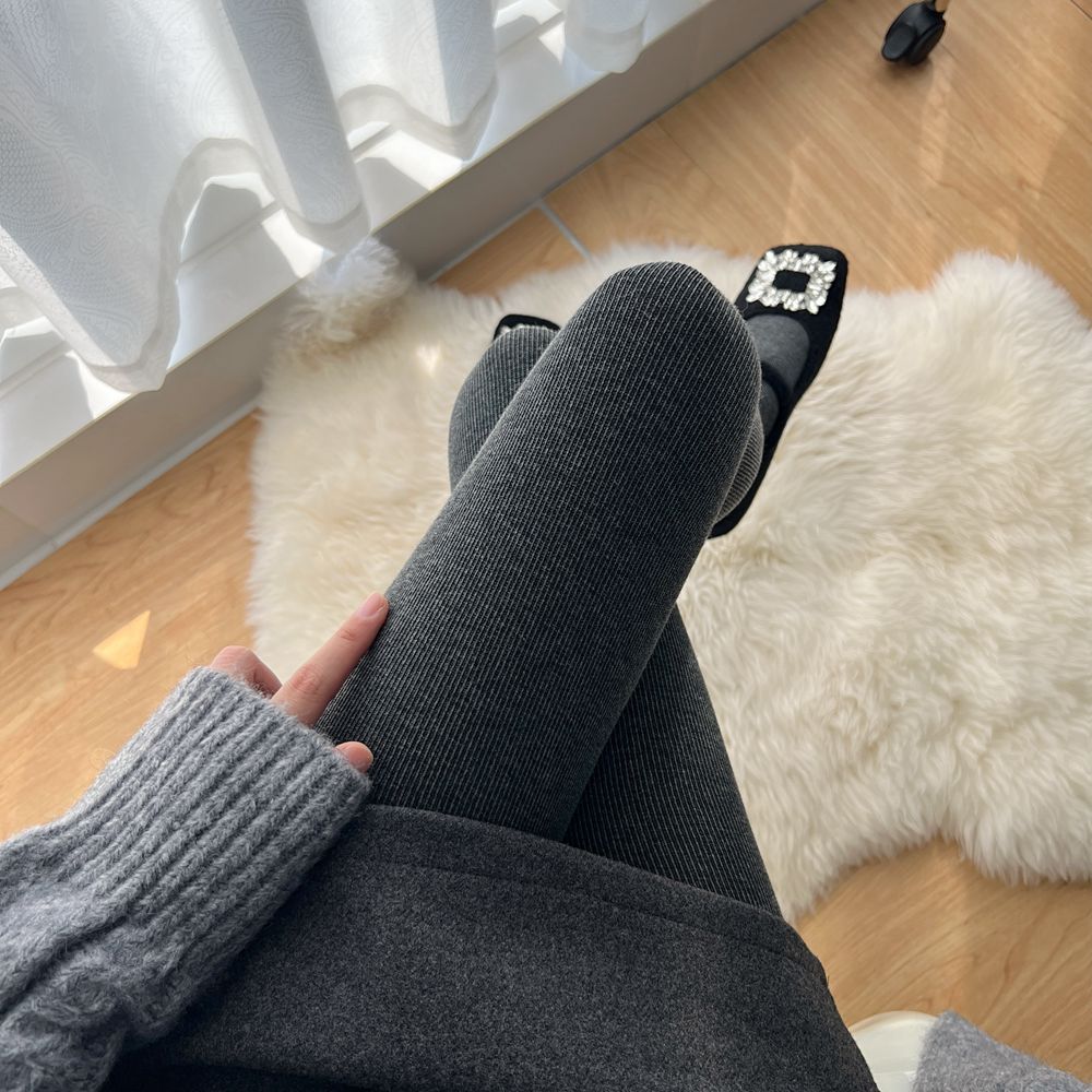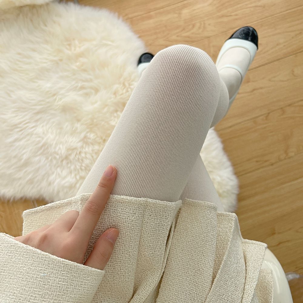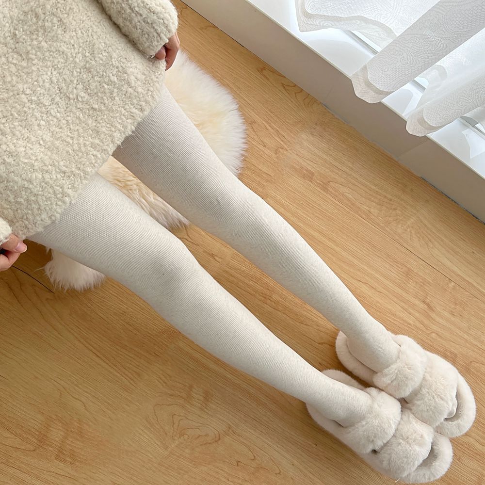 일본식 가을과 겨울 기모 두꺼운 면 수직 줄무늬 팬티 스타킹 두껍게 오트밀 화이트 밀크 커피 일반 레깅스