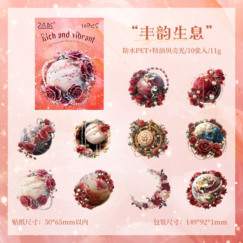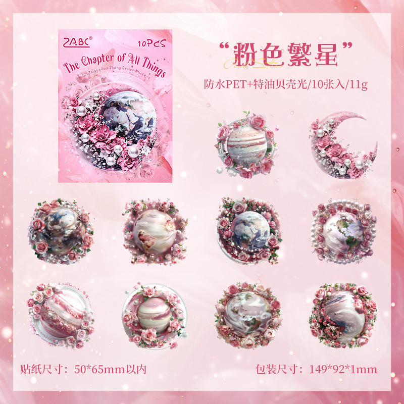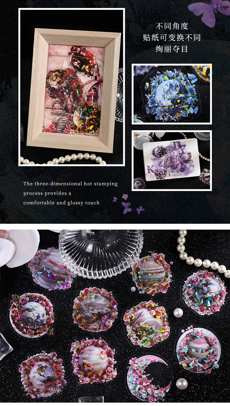 모든 Huazhang 특수 오일 레이저 행성 스티커 팩 diy 손 계정 일기 스티커 투명 방수 행성 스티커