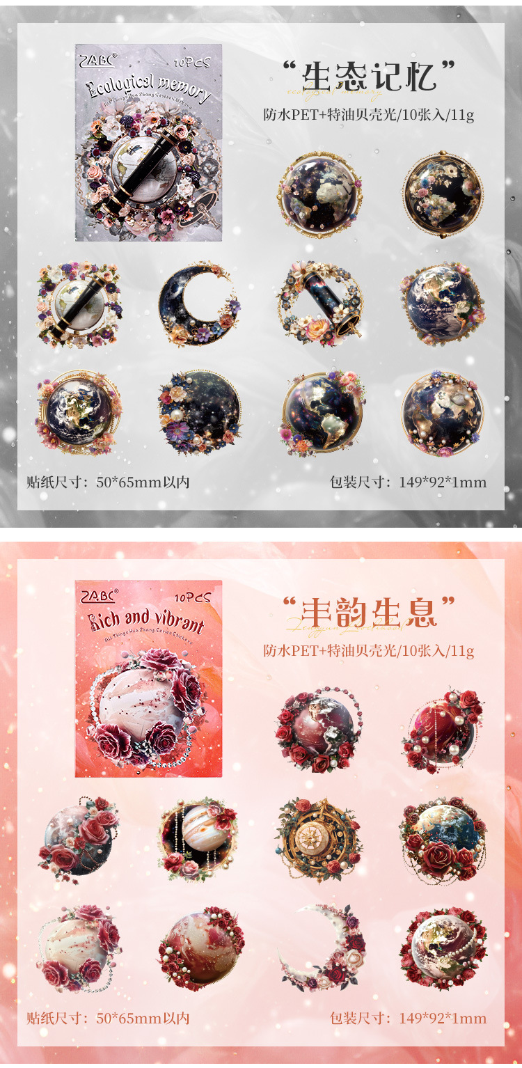 모든 Huazhang 특수 오일 레이저 행성 스티커 팩 diy 손 계정 일기 스티커 투명 방수 행성 스티커스토어 가기