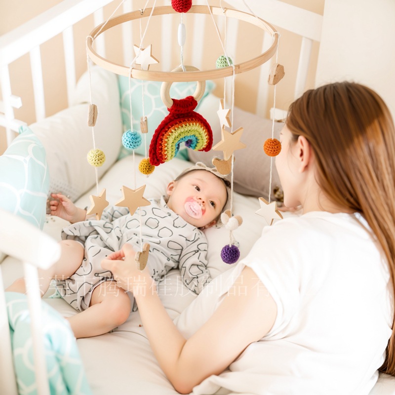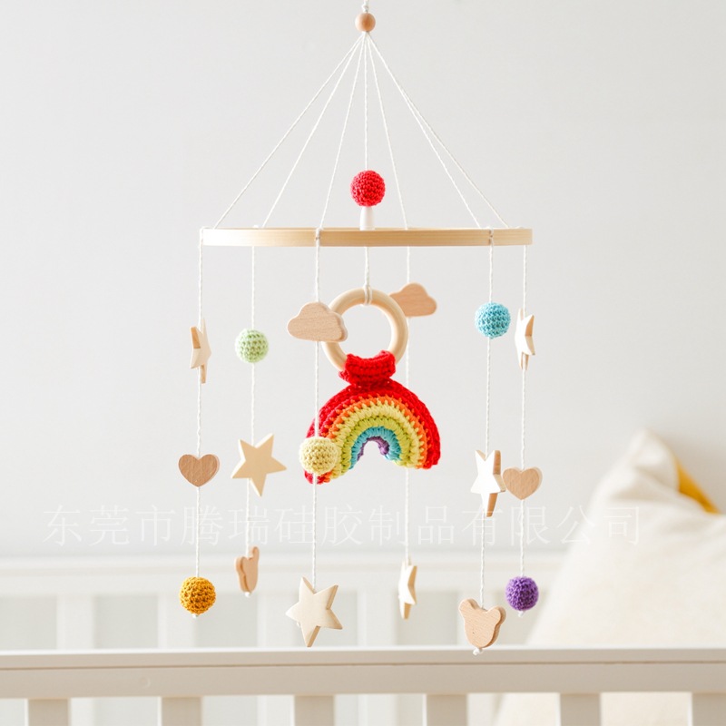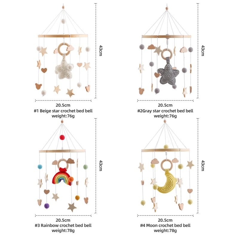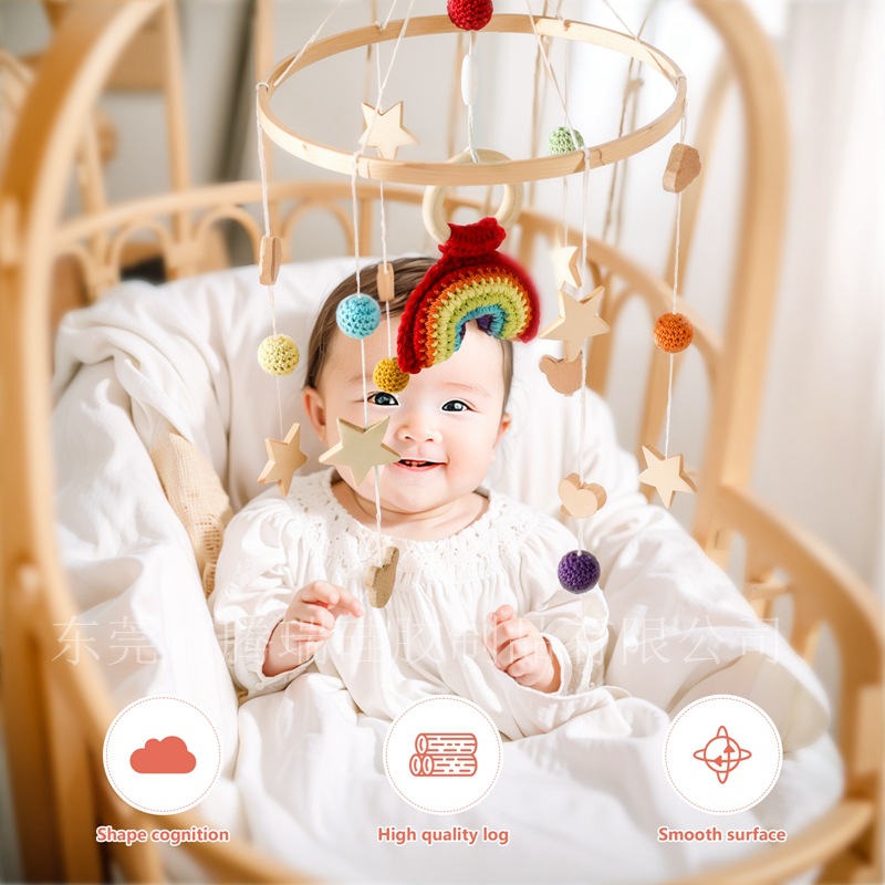 북유럽 스타일 스타 문 구름 침대 펜던트 아기 스타 침대 벨 분리 가능한 딸랑이 나무 바람 벨 교수형 장식