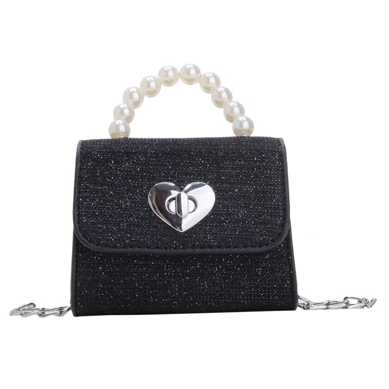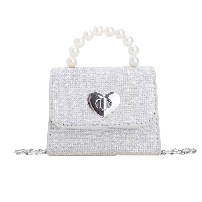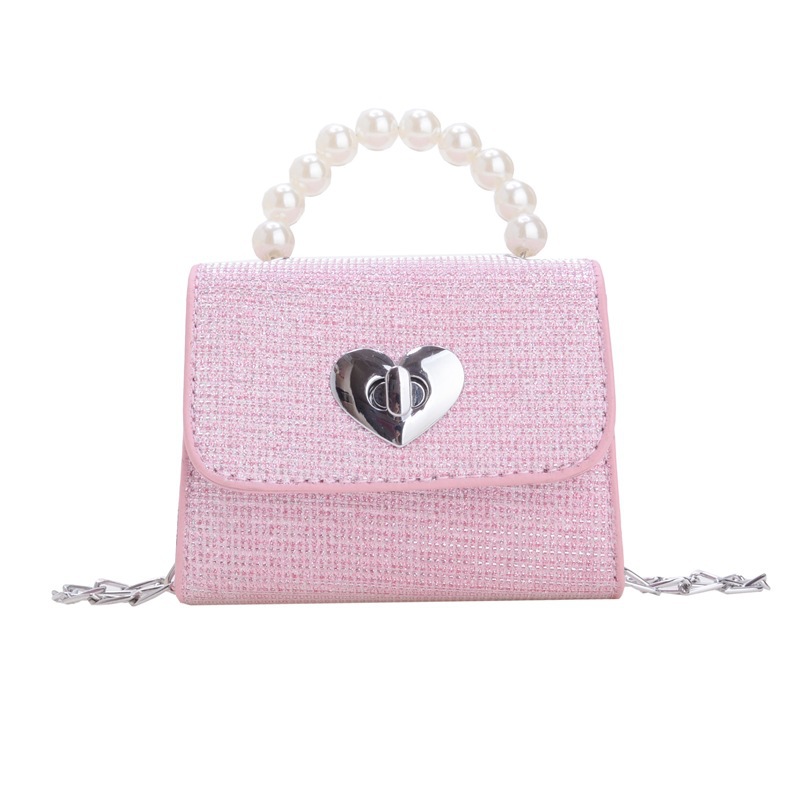 2024 새로운 어린이 체인 크로스 바디 백 사랑 잠금 버클 어린이 가방 서양식 진주 휴대용 작은 광장 가방 소년 소녀