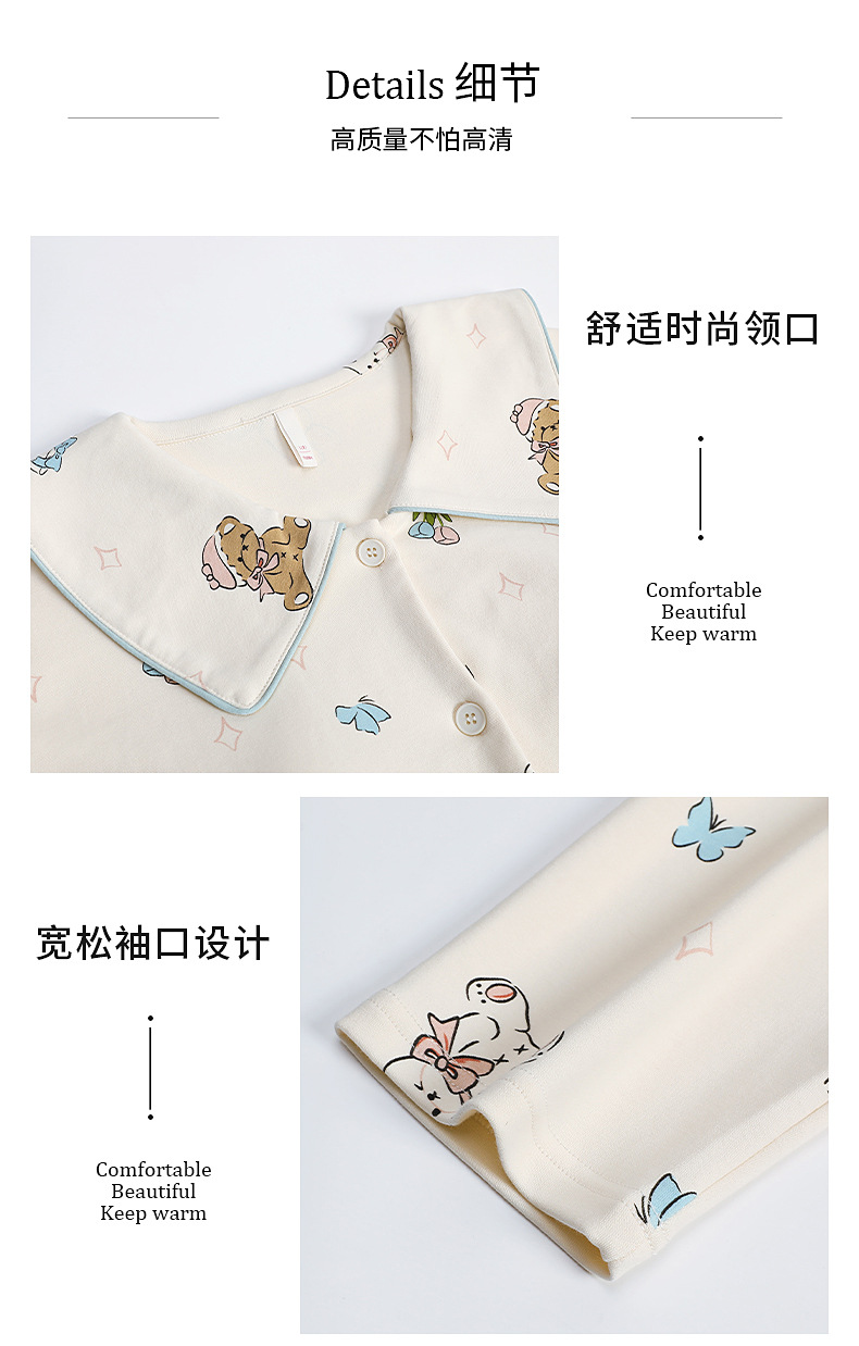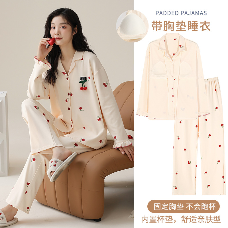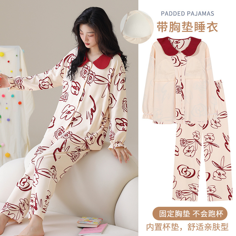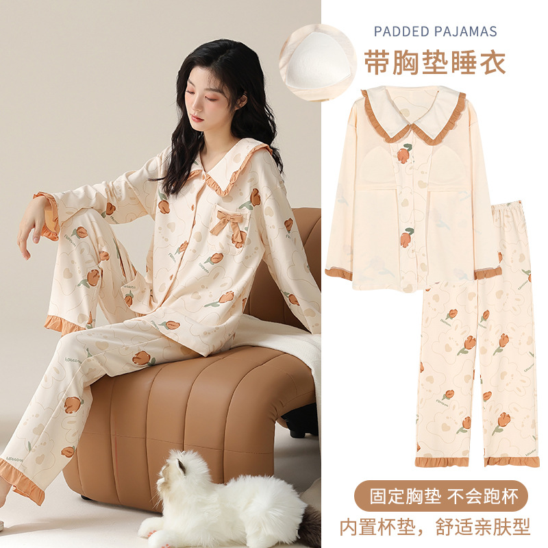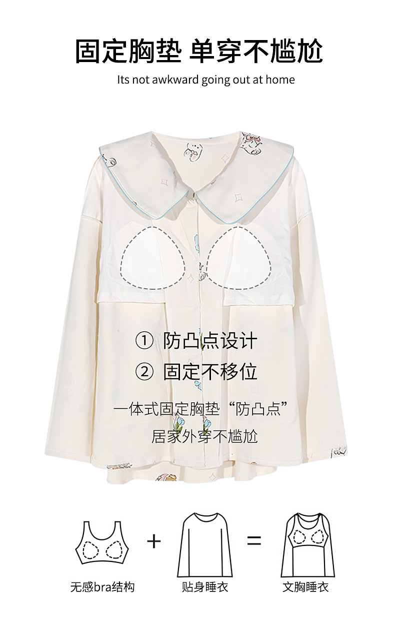 가을과 겨울 집 옷을 하이 퀄리티 귀여운 만화 세트 가슴 패드 긴 소매 옷깃과 여성의 봄과 가을스토어 가기