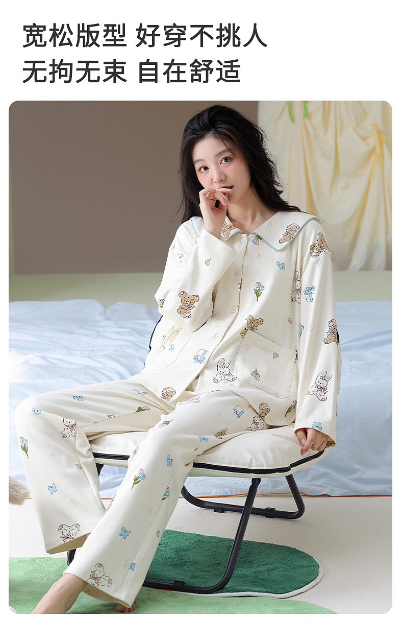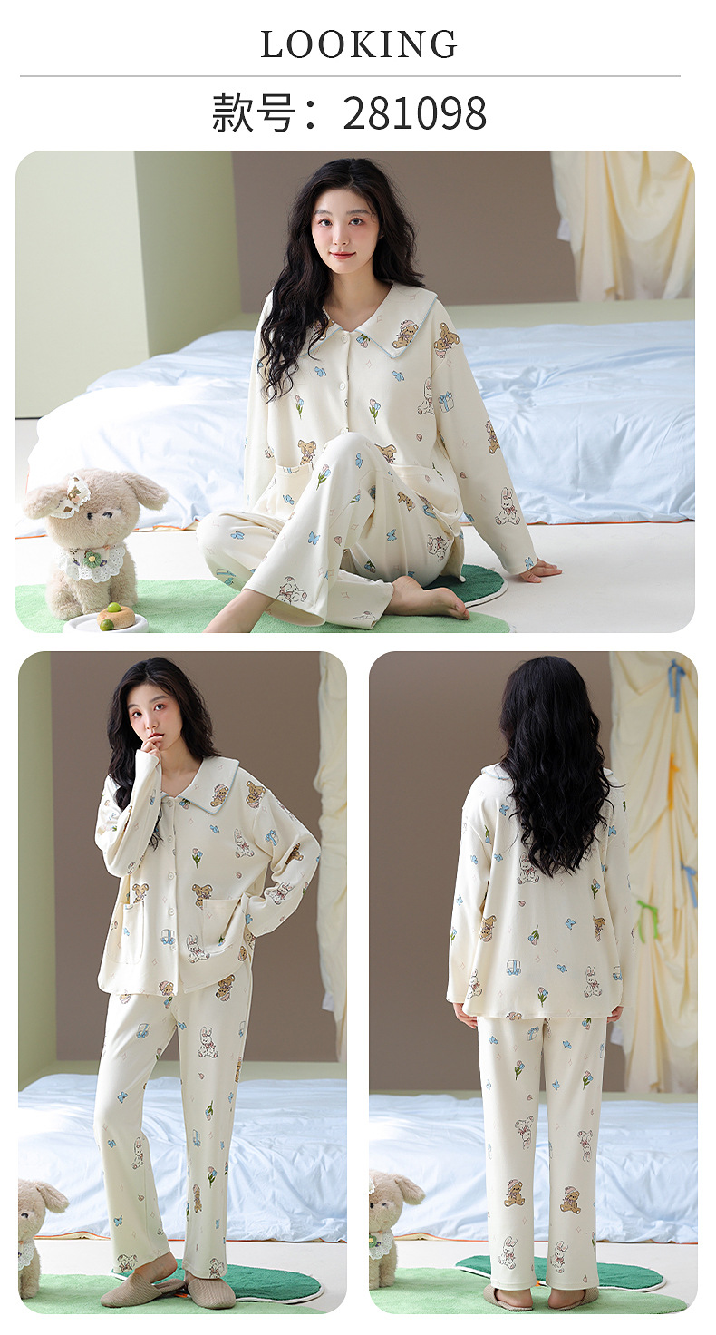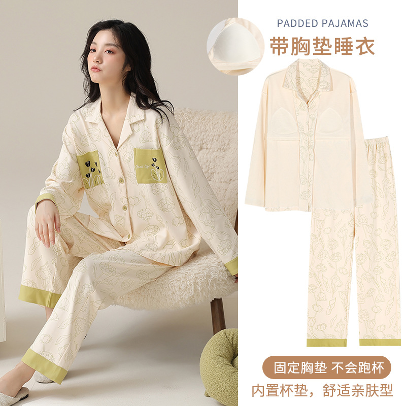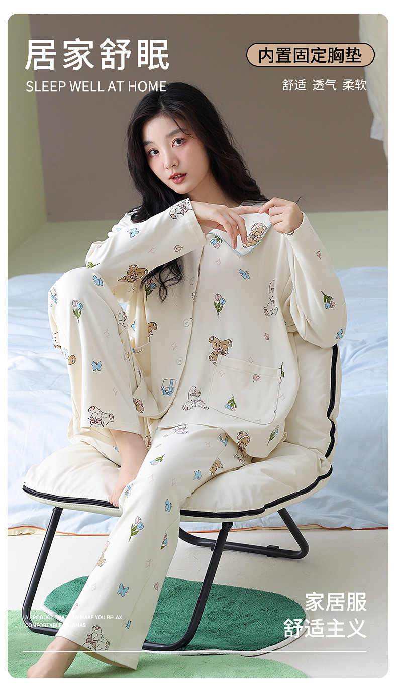 가을과 겨울 집 옷을 하이 퀄리티 귀여운 만화 세트 가슴 패드 긴 소매 옷깃과 여성의 봄과 가을스토어 가기