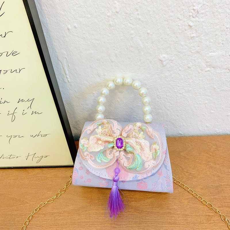 새로운 중국 스타일 술 어린이 크로스 바디 백 패션 활 소녀 어깨 가방 진주 액세서리 핸드백스토어 가기