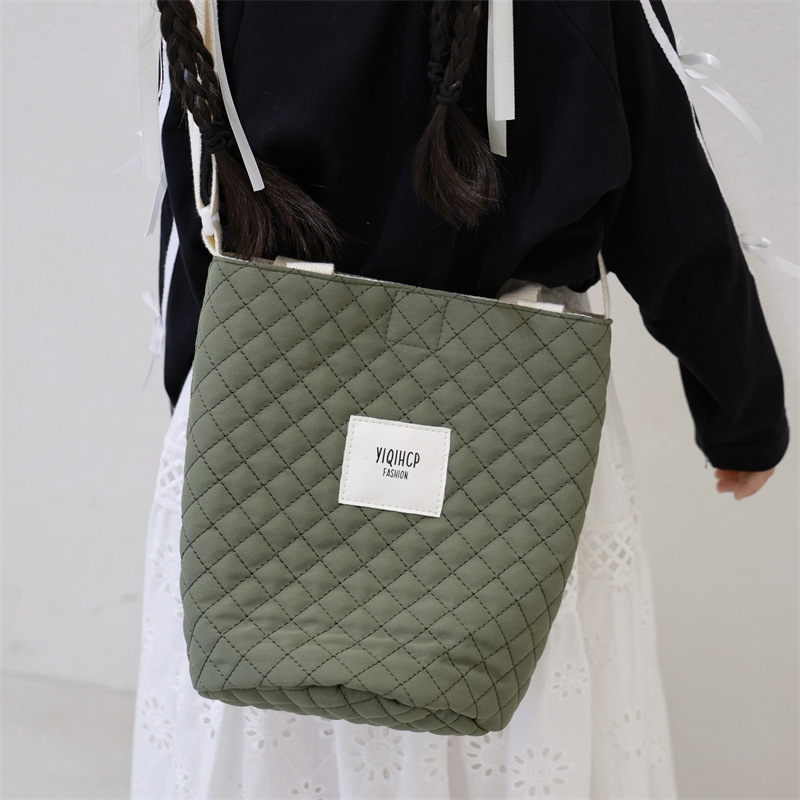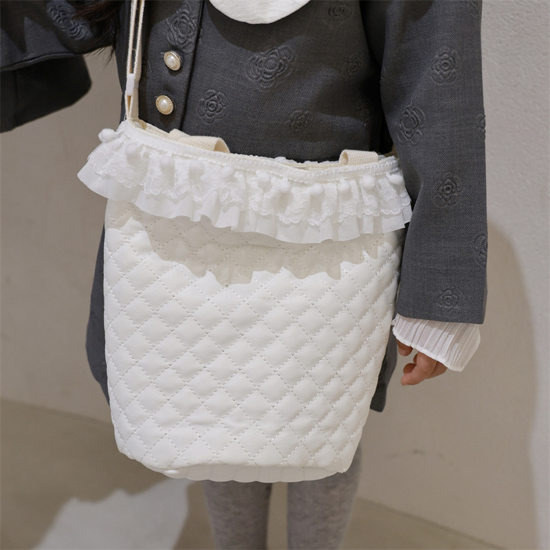 한국 스타일 마름모꼴 레이스 자수 스레드 편지 헝겊 레이블 크로스 바디 어린이 핸드백 세련된 소녀 유행 퀼트 숄더 백