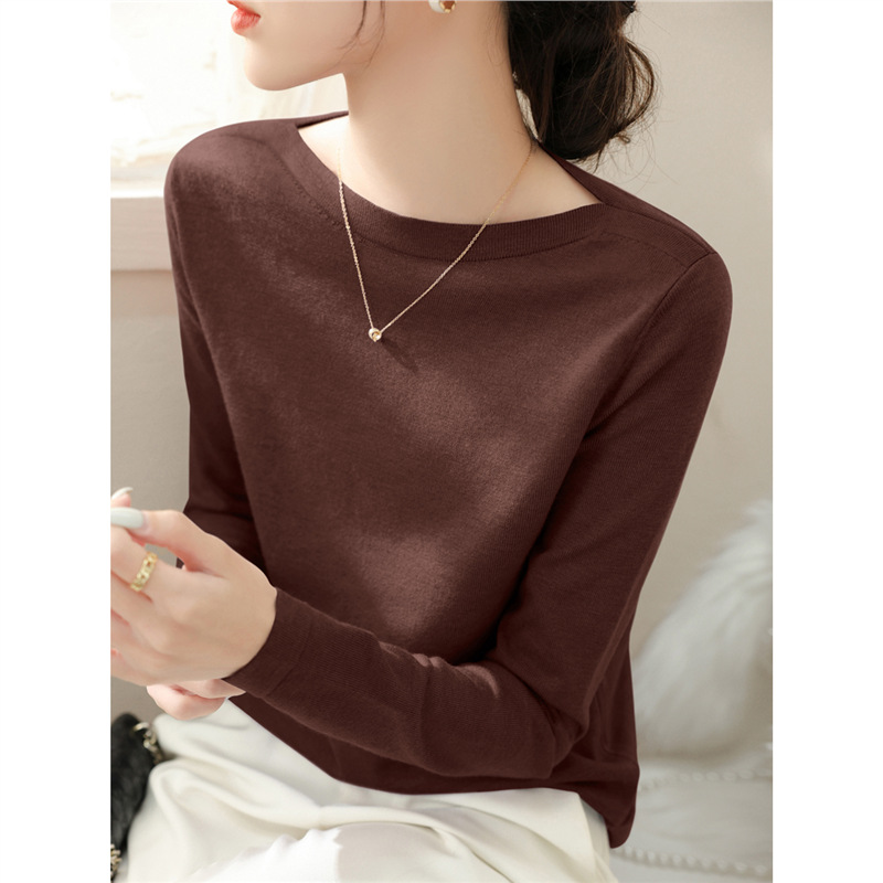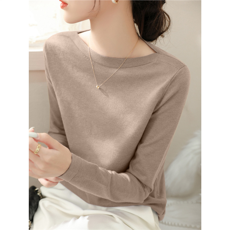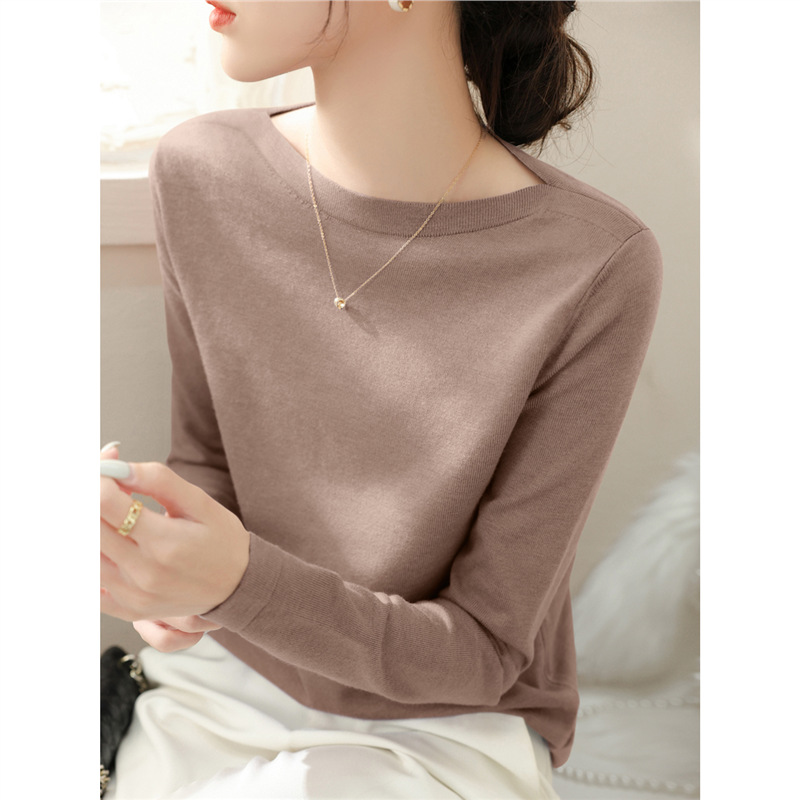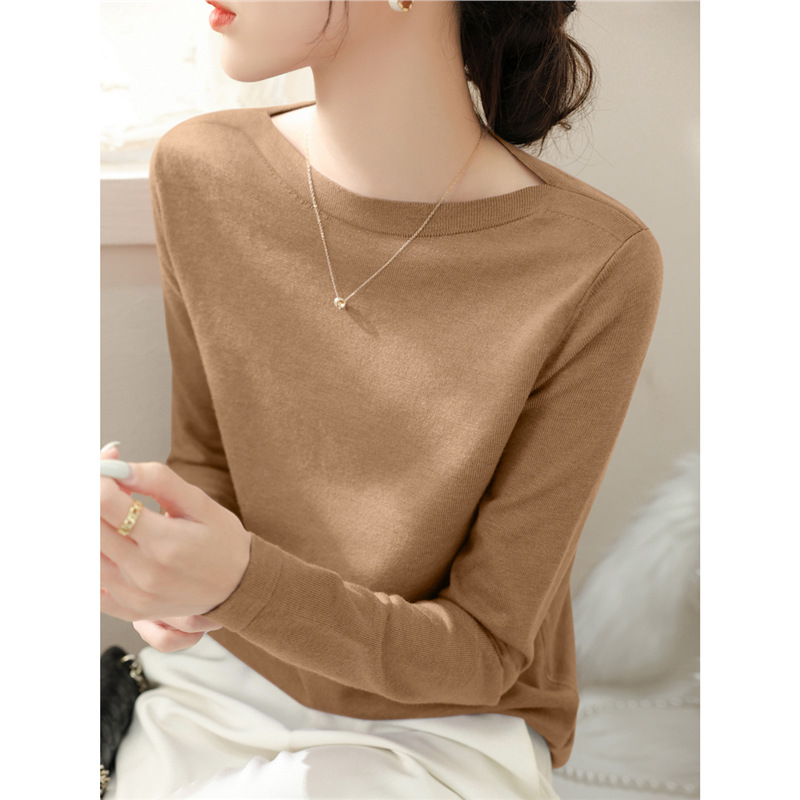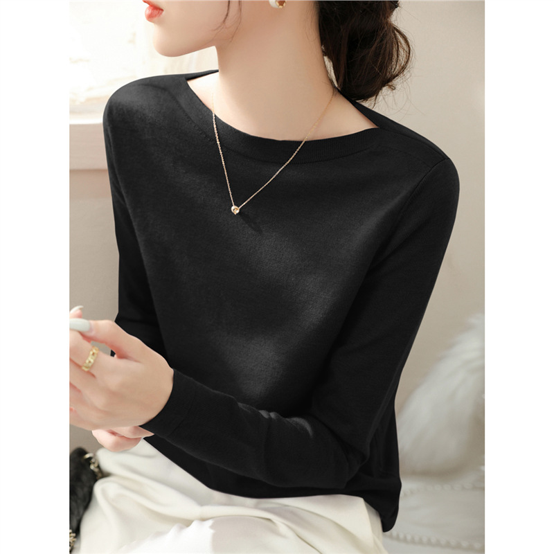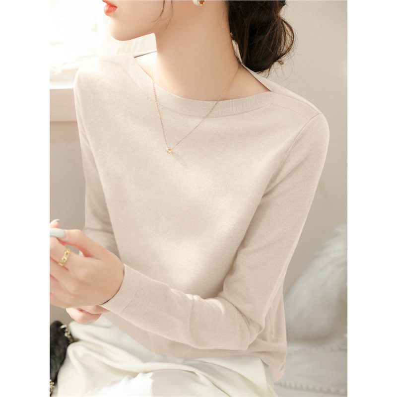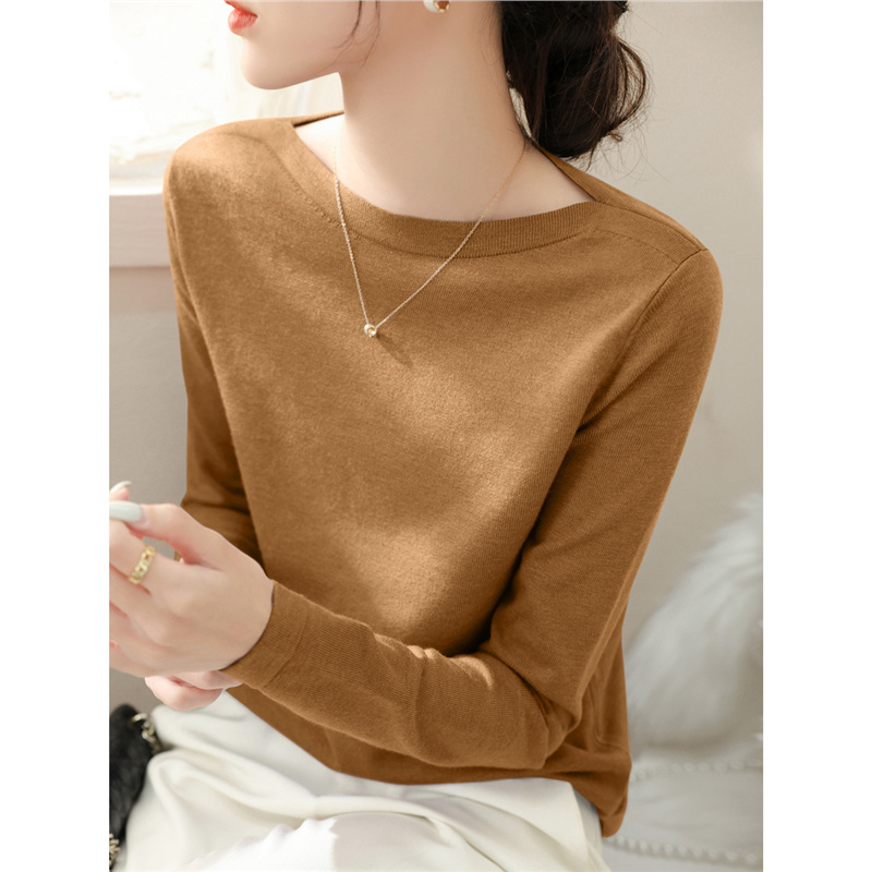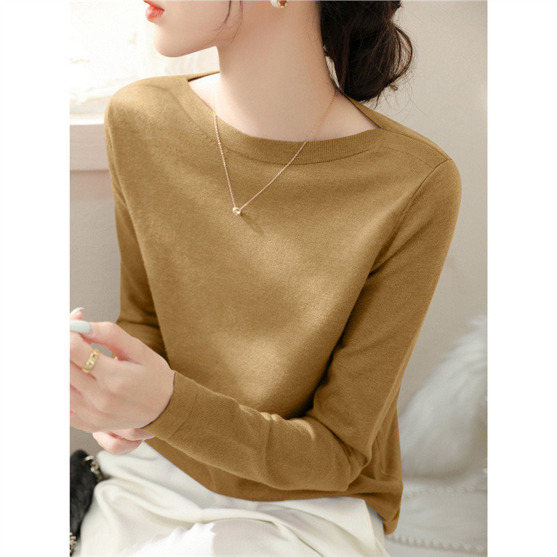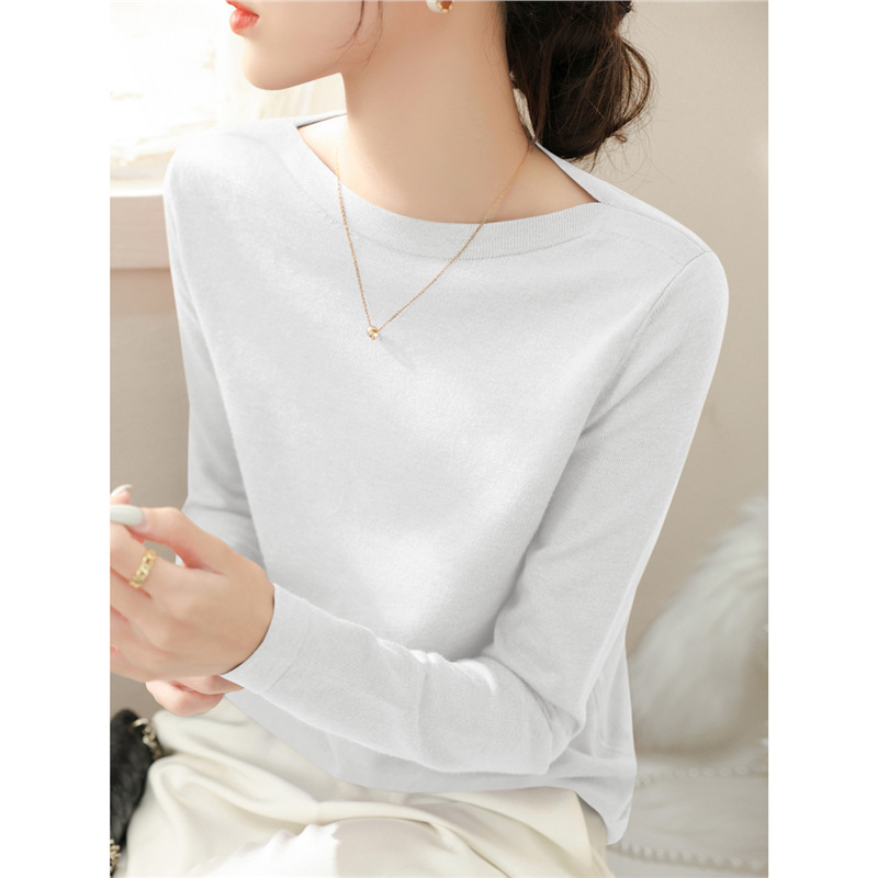 가을 얇은 어깨 칼라 슬림 핏 긴소매 기본 셔츠 새로운 디자인 센스 내부 슬림 스웨터 탑